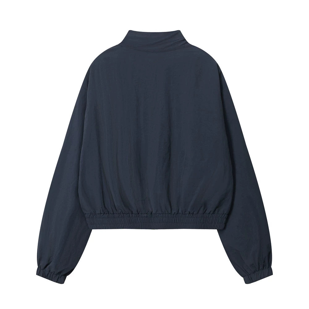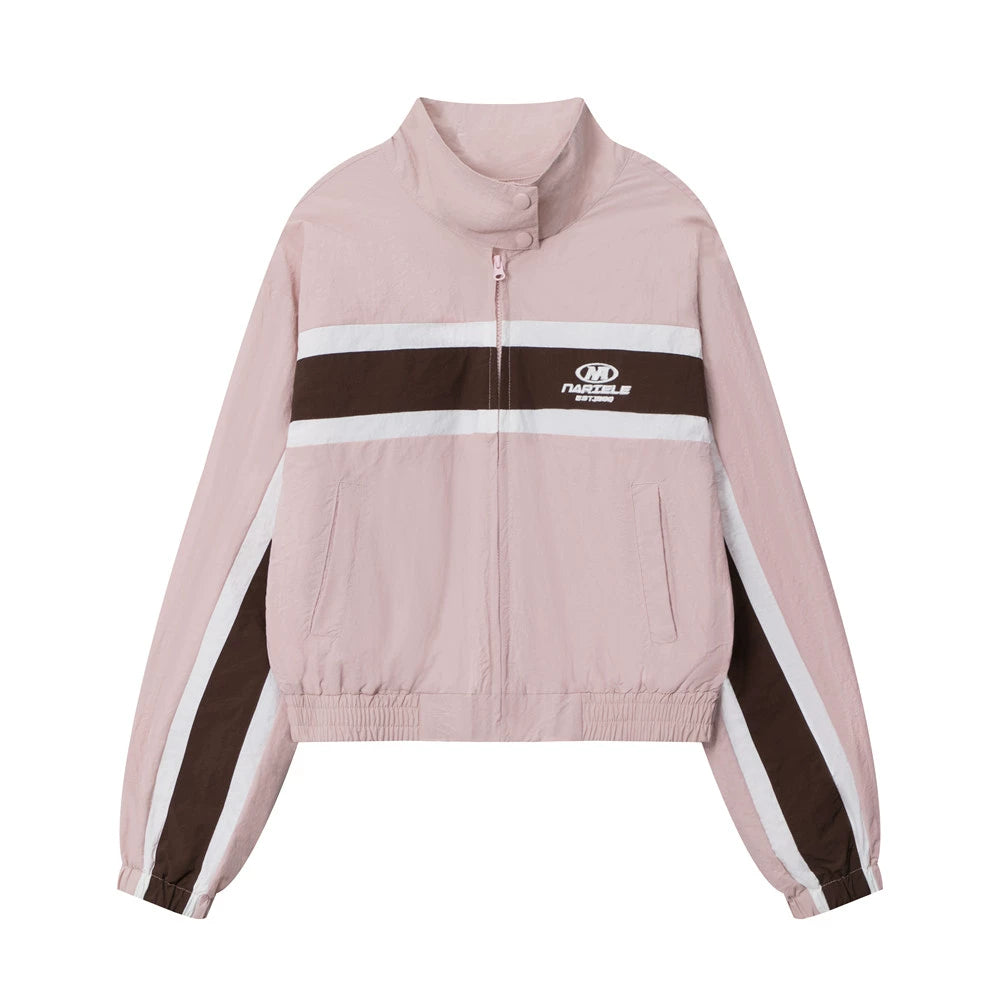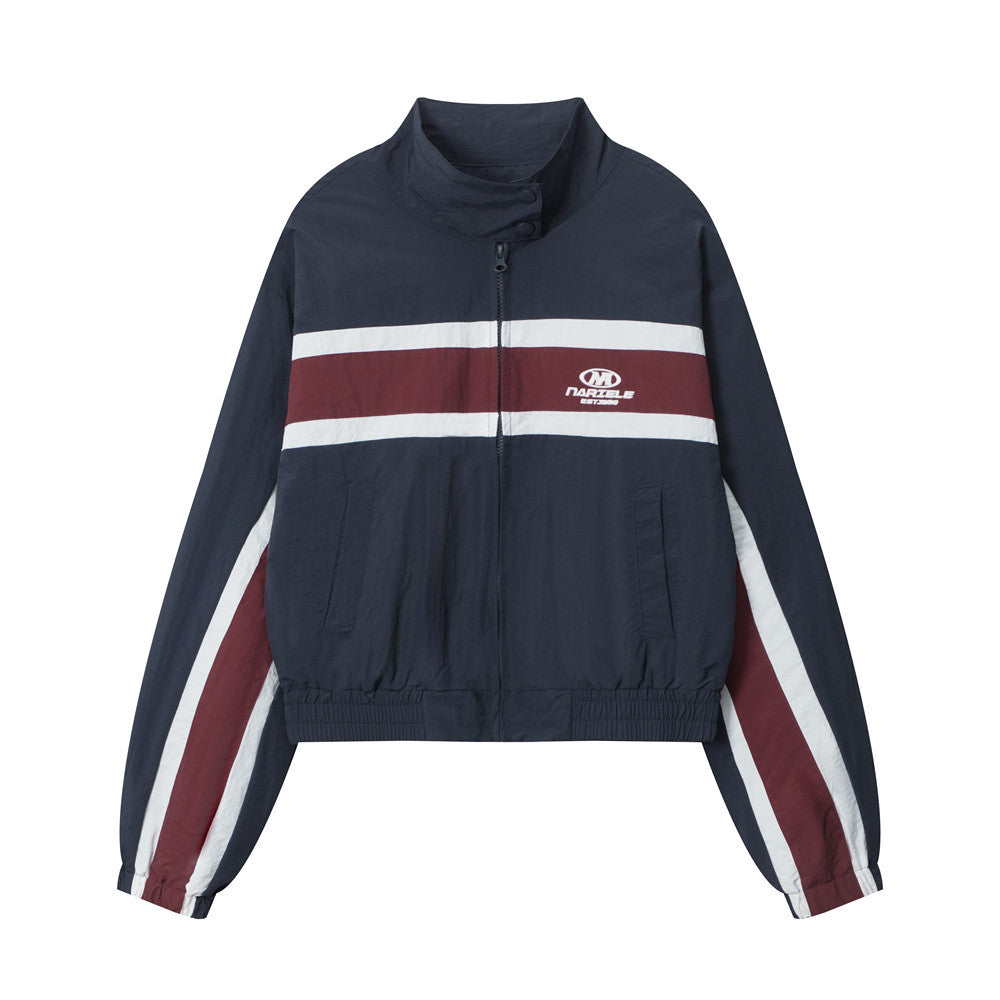 Women Jacket Striped Color Stitching Stand-Collar Jacket Autumn Casual Loose Jacket