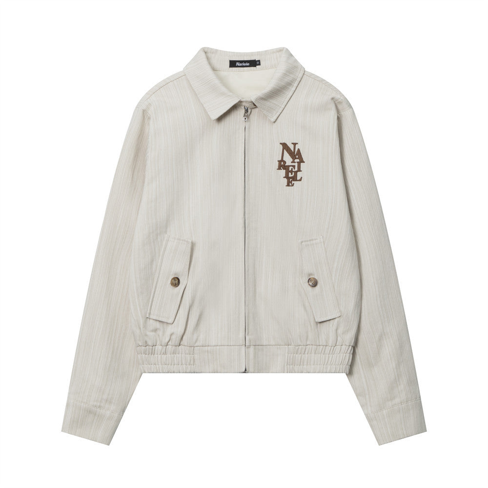 Women Jacket Letter Embroidered Jacket Casual Polo Collar Zipper Cardigan Outerwear