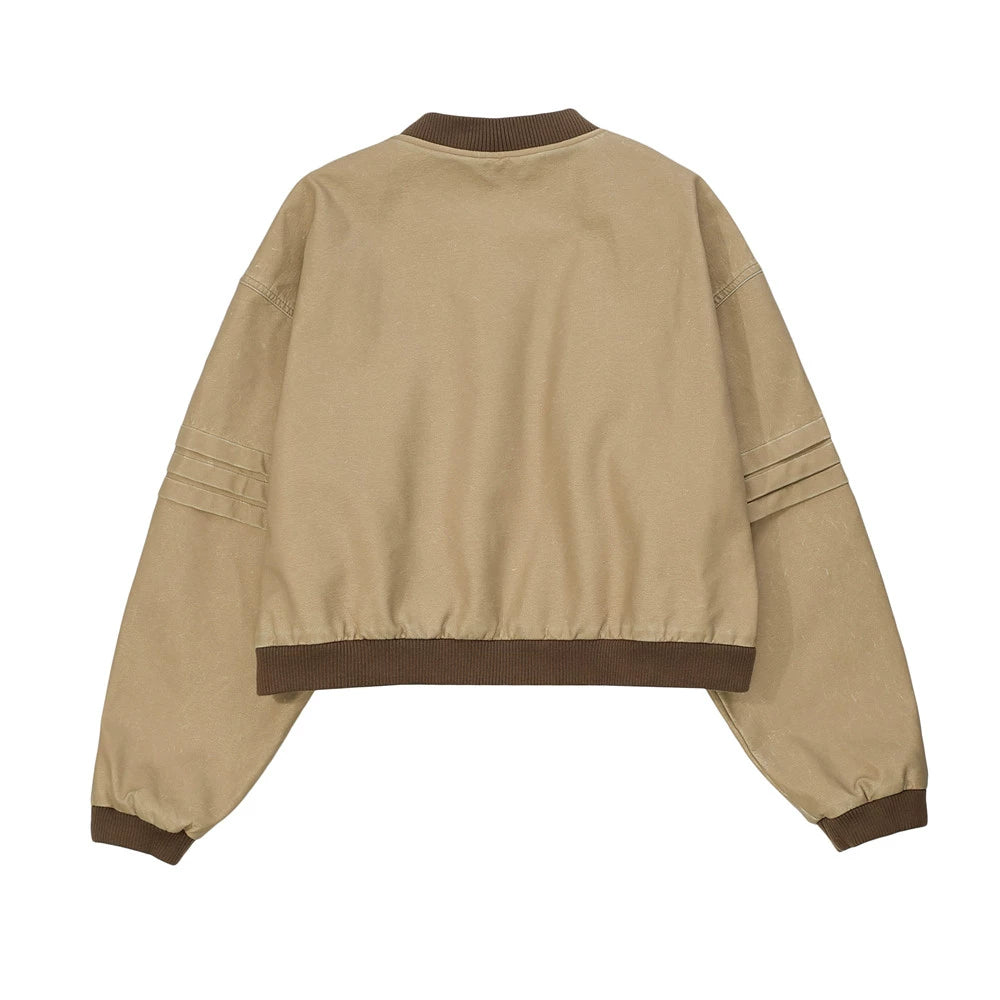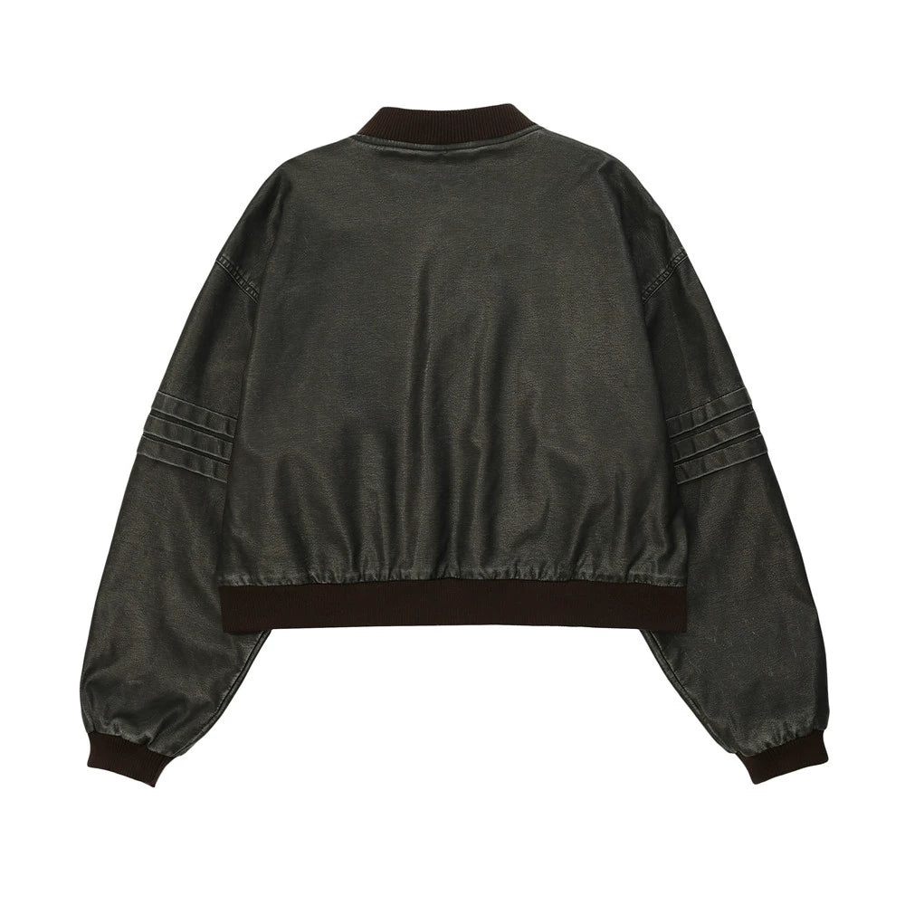 Women Jacket Short PU Leather Jacket Stand Collar Color Matching Zipper Jacket
