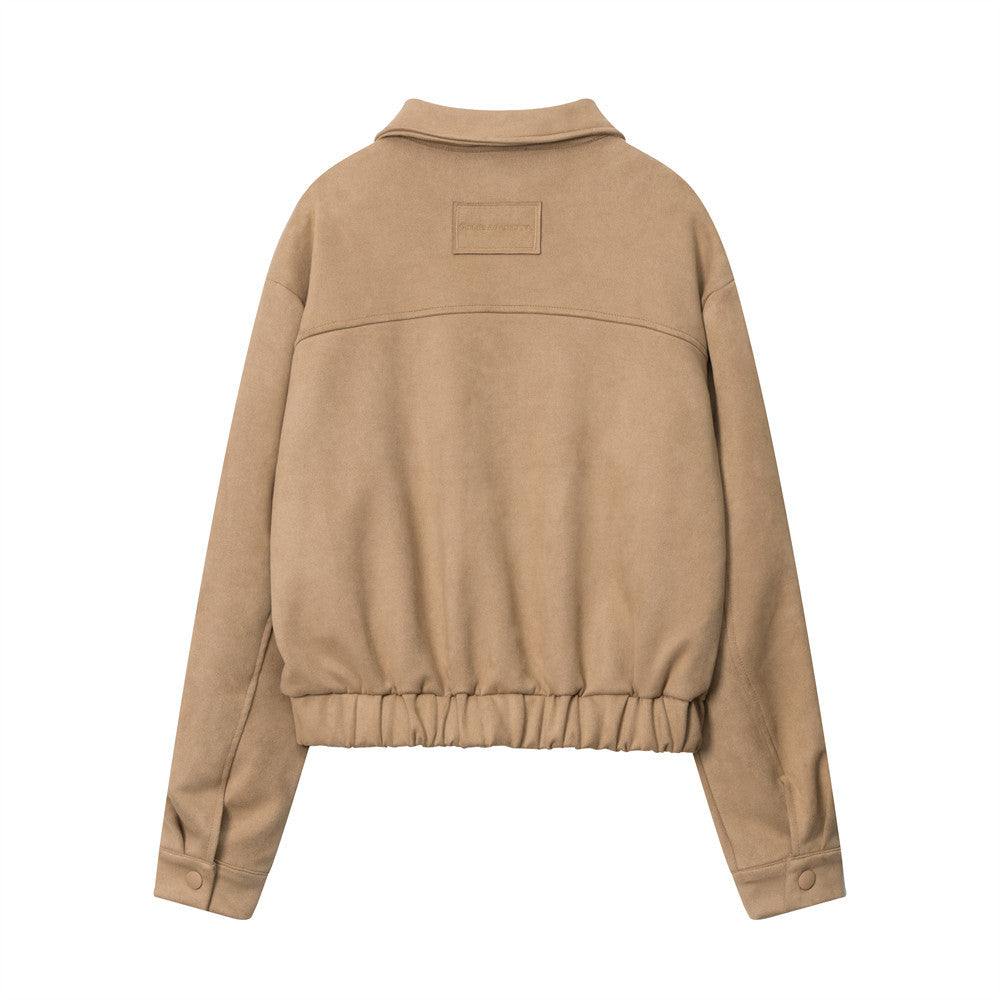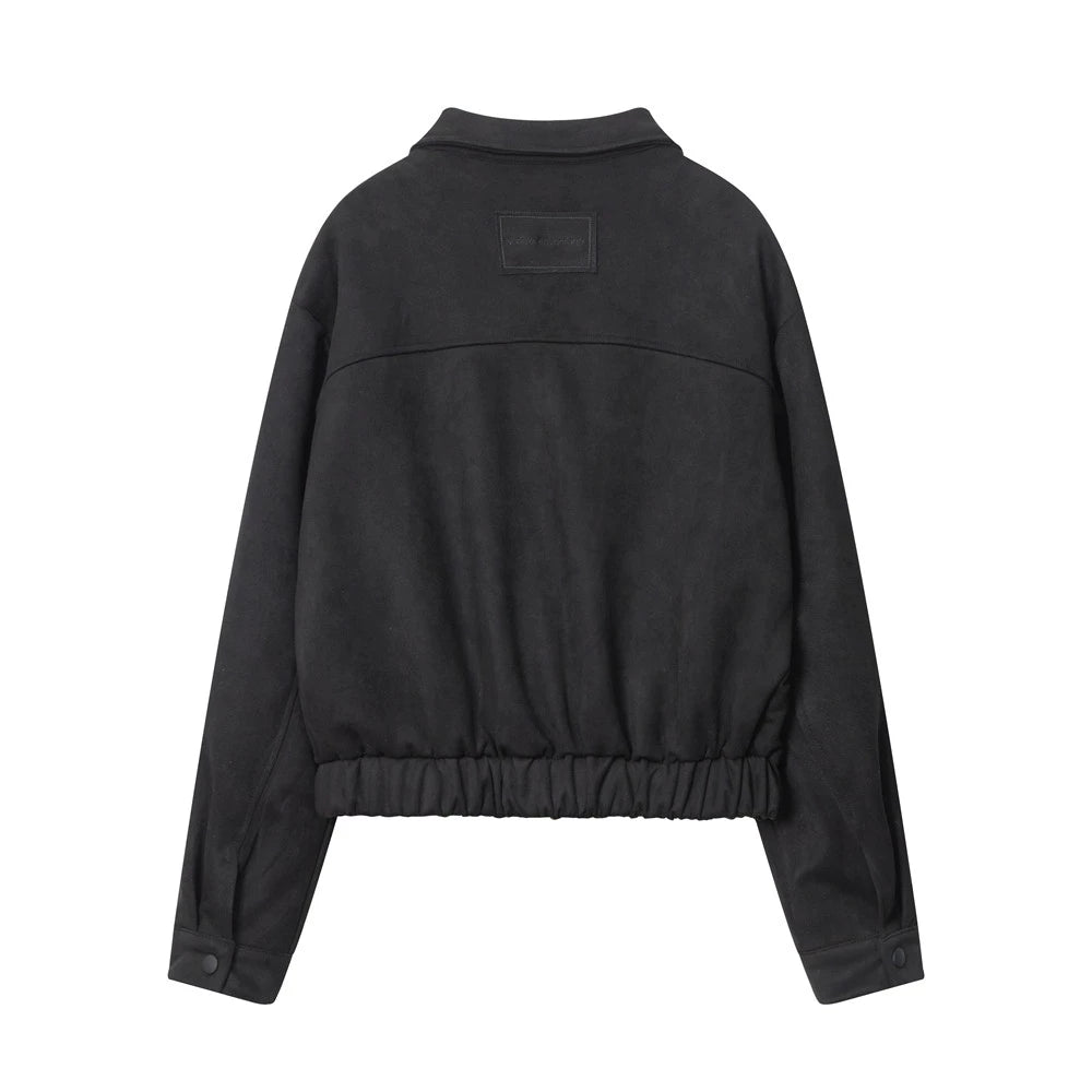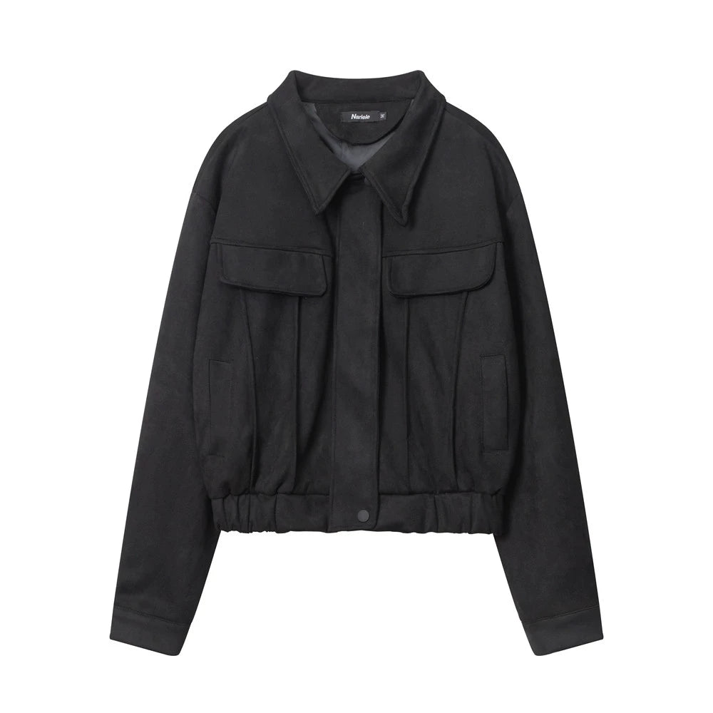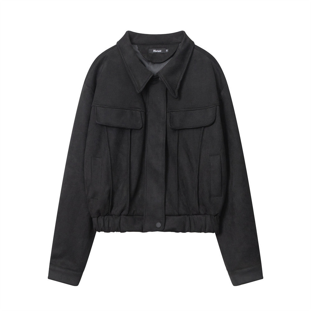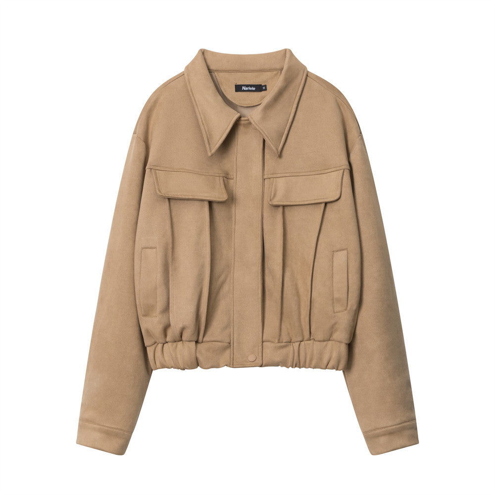 Women Jacket Wrinkle Short Coat Casual Faux Pocket Decorative Solid Color Jacket