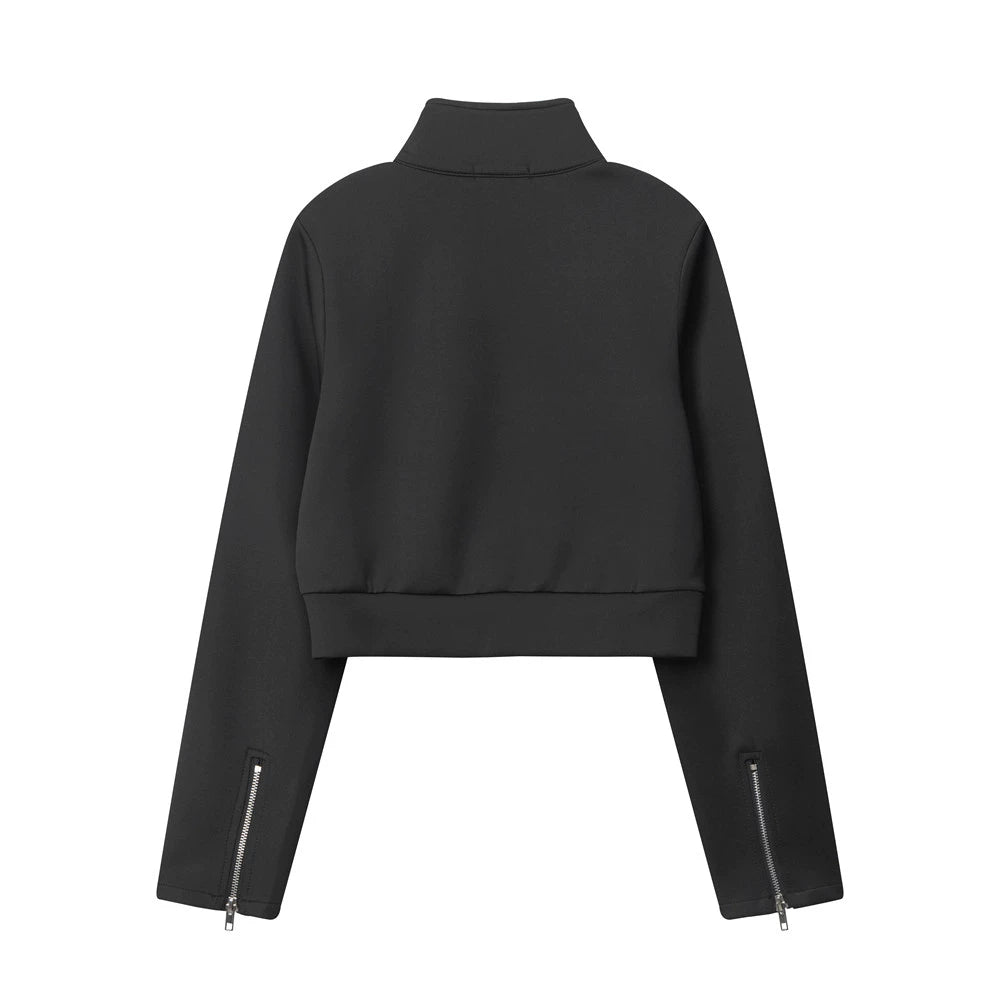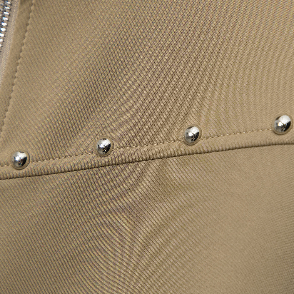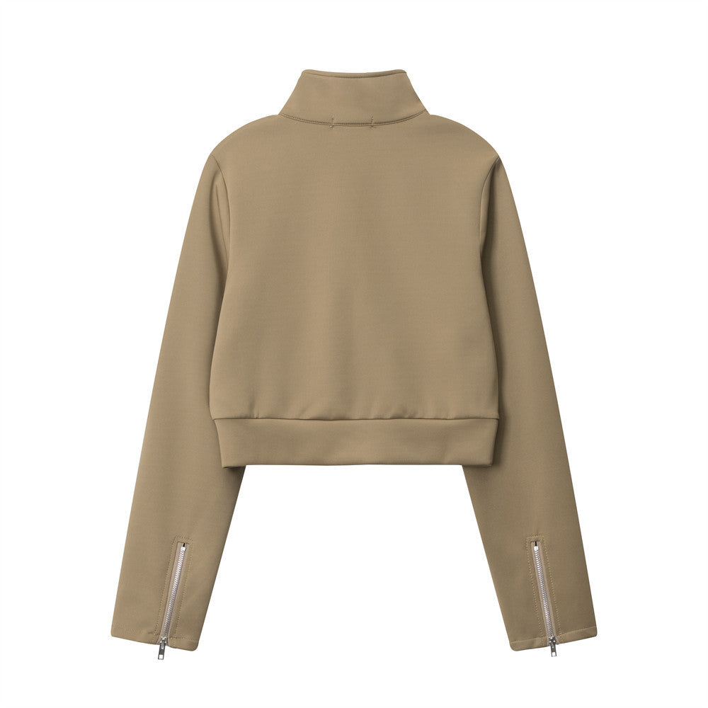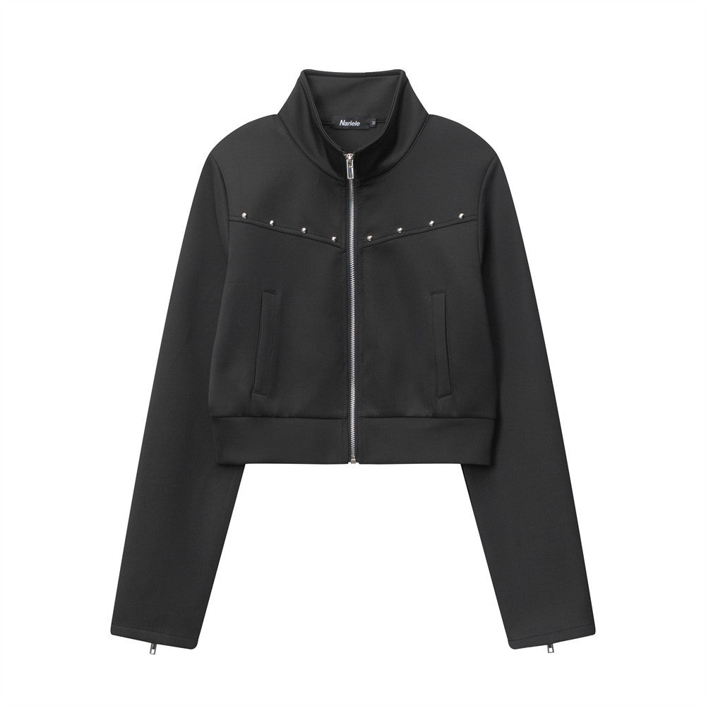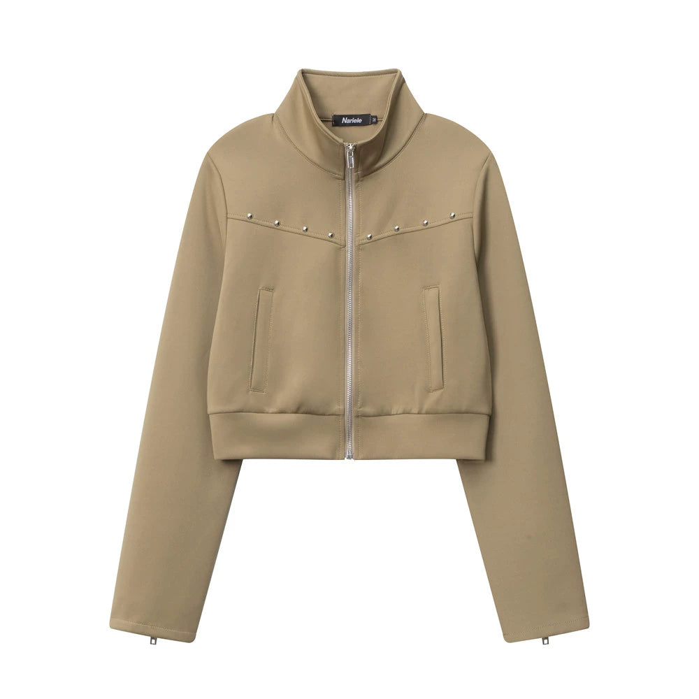 Women Jacket Decorative Rivets Zip Short Jacket Stand-up Collar Cardigan Coat