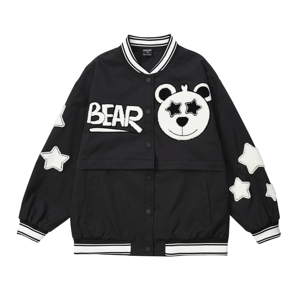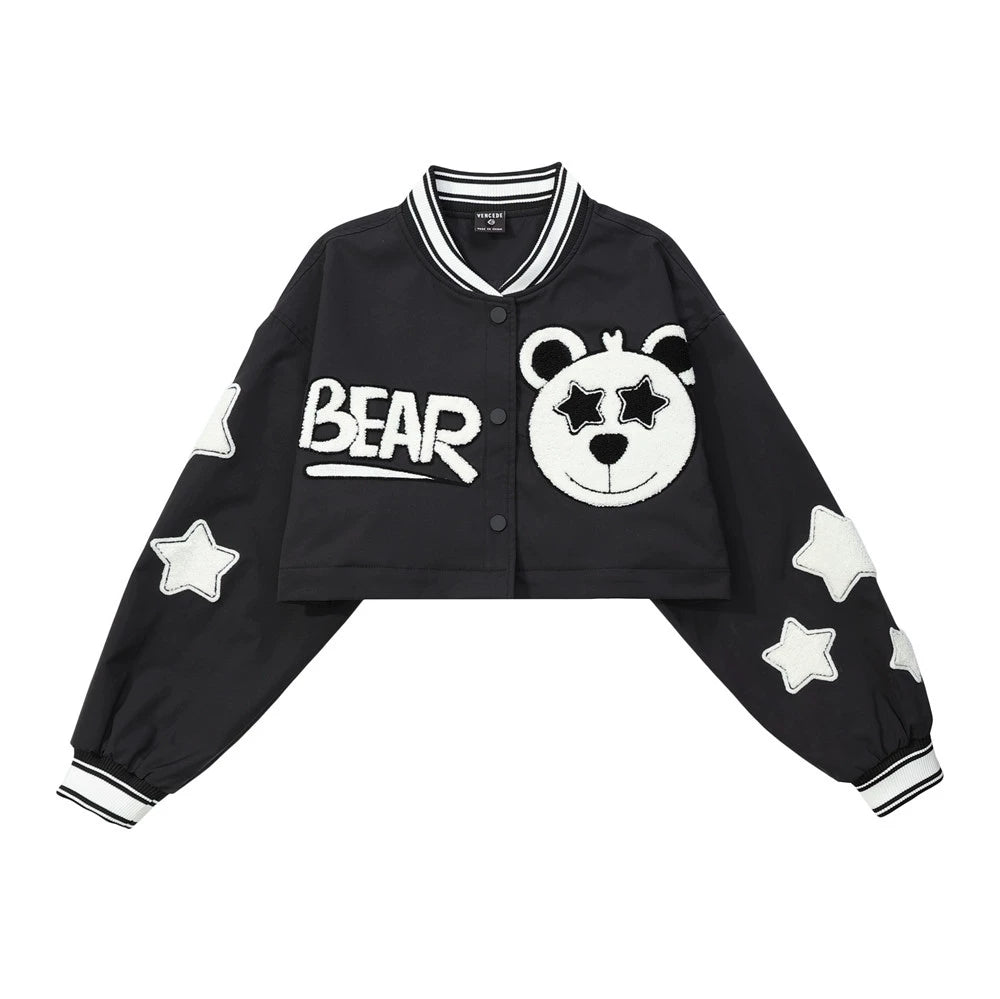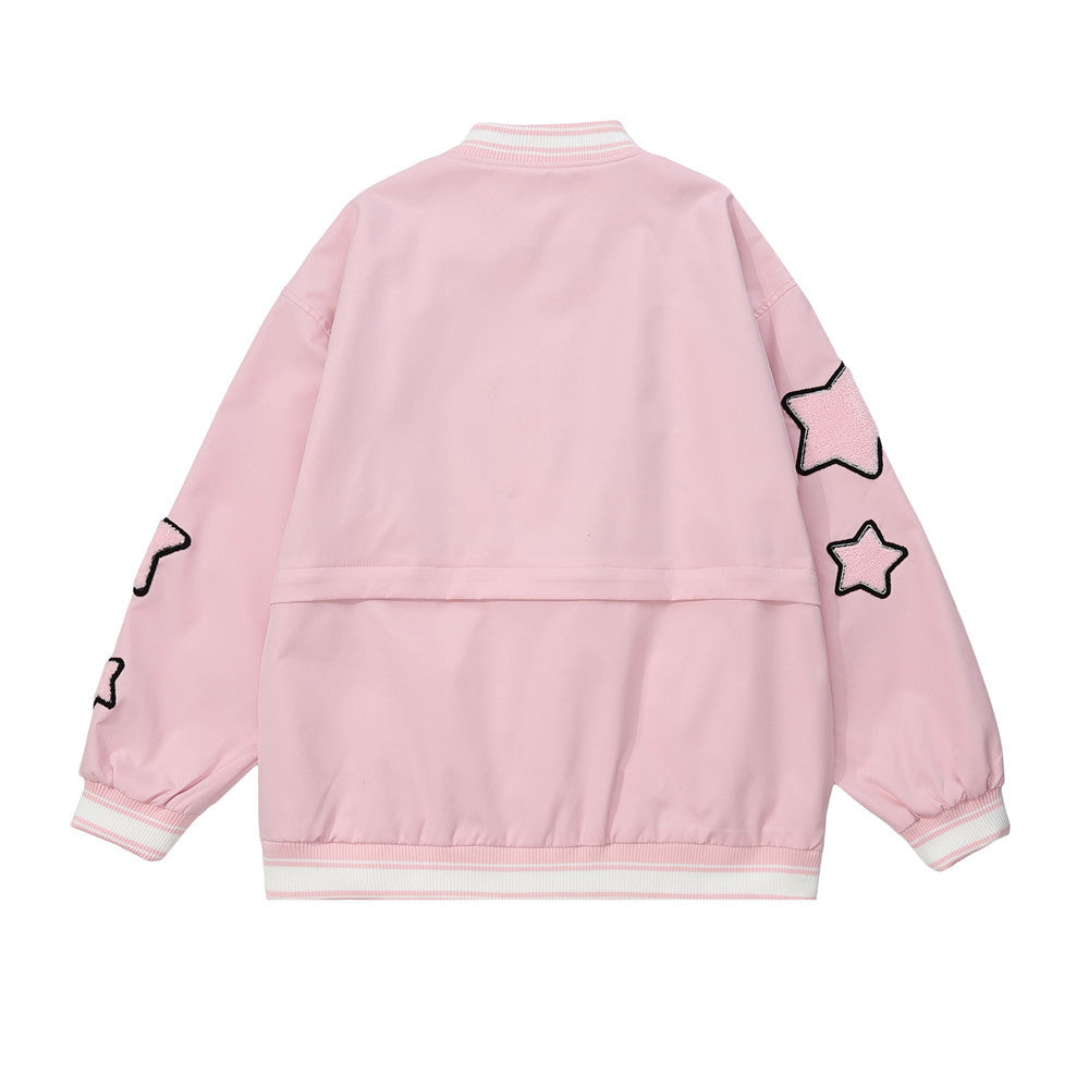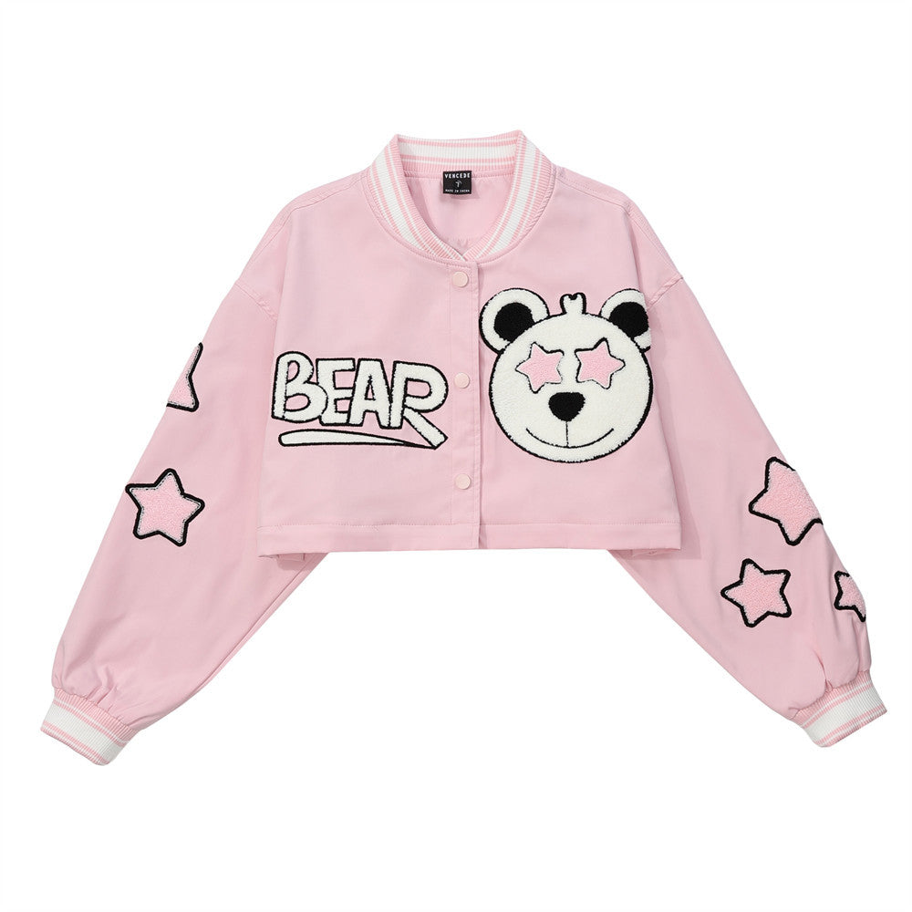 Women Jacket Detachable Cropped Jacket Embroidered Baseball Uniform