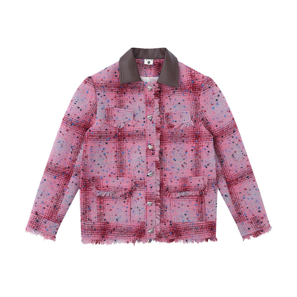 Women Jacket Loose PU Leather Collar Autumn and Winter Long Sleeve Coat
