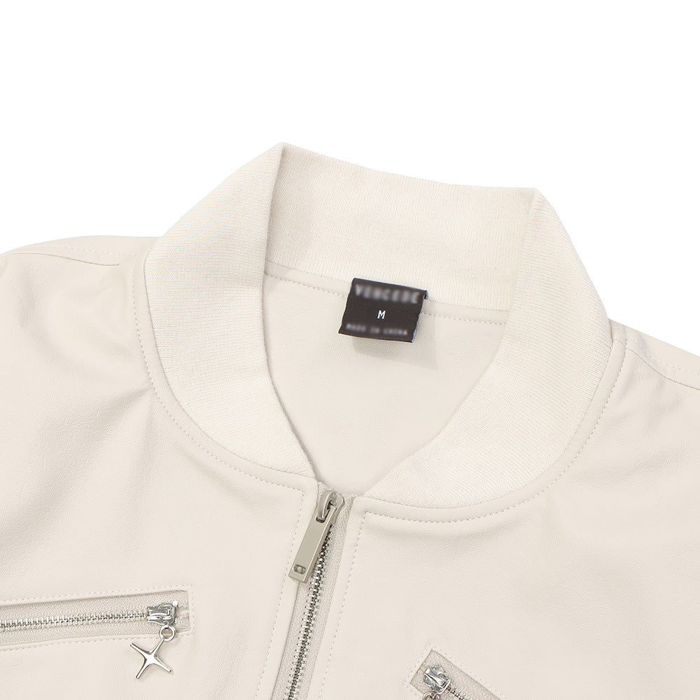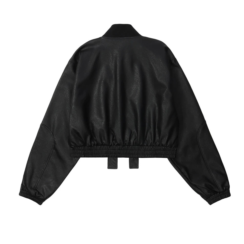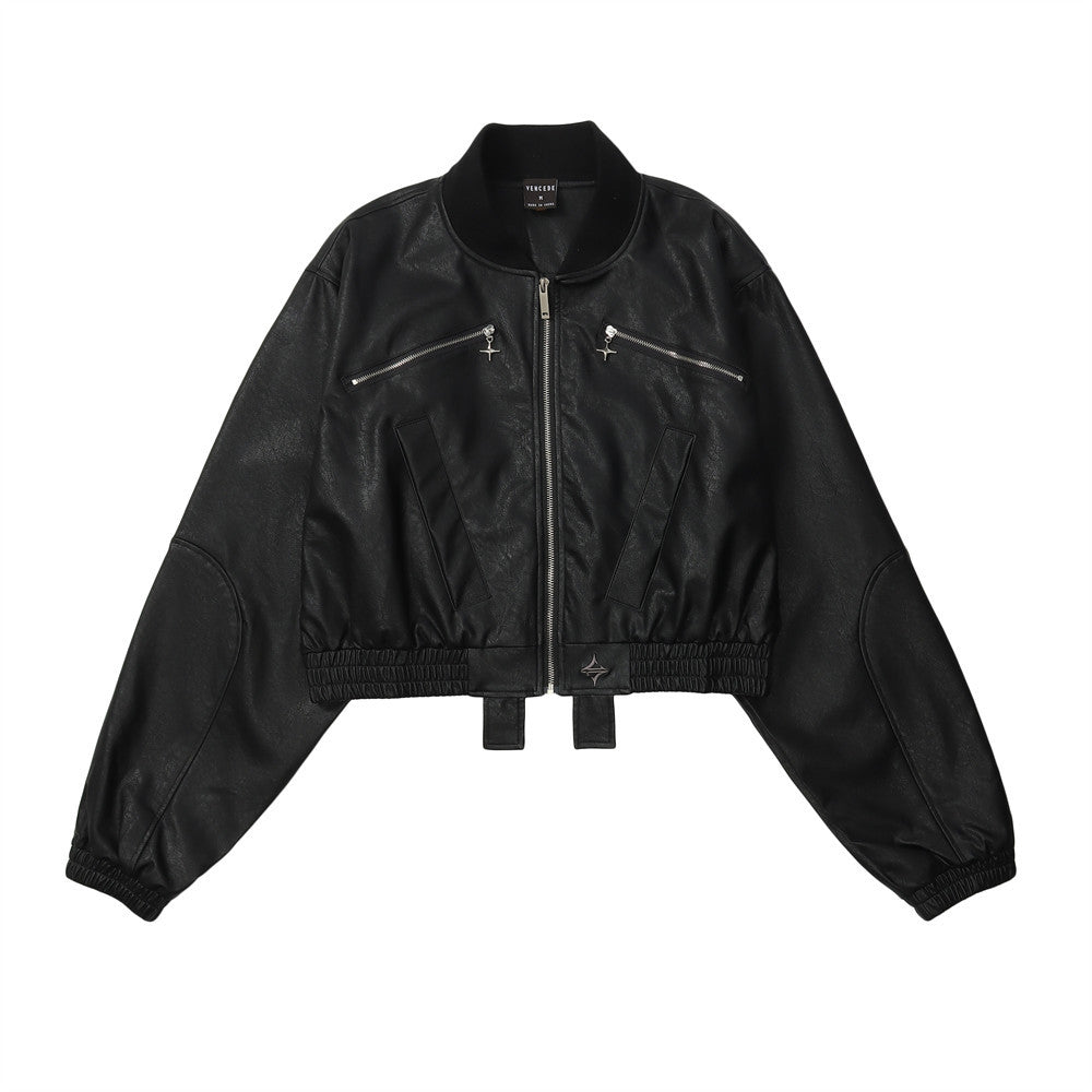Women Jacket Short Leather Jacket Motorcycle Clothing Coat Zipped Stand Collar Fall Jacket