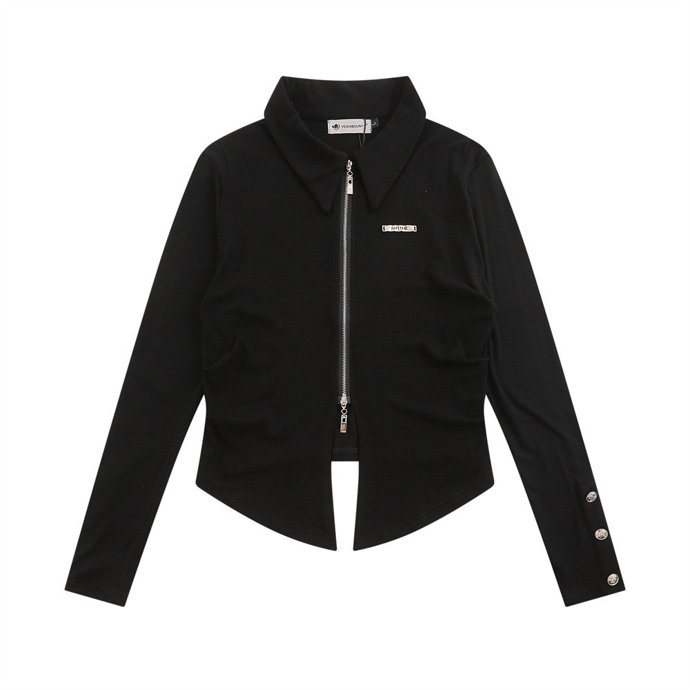 Women Jacket Metal Buckle Long Sleeve Thin Slim Fit Zipper Cardigan Outerwear
