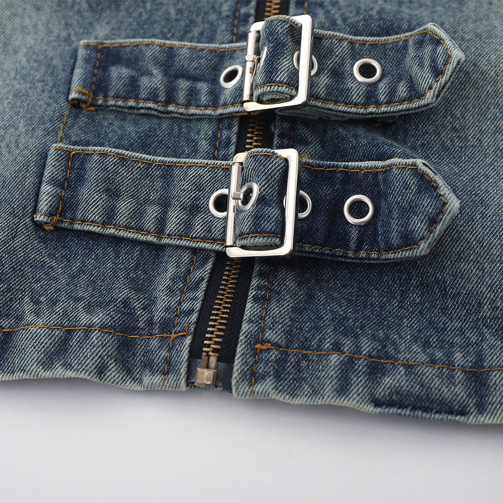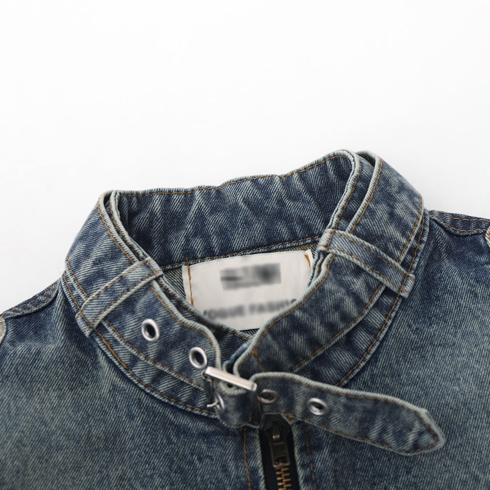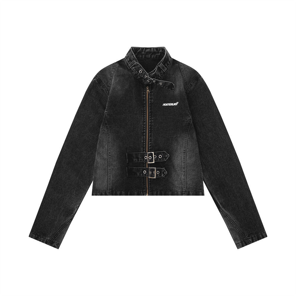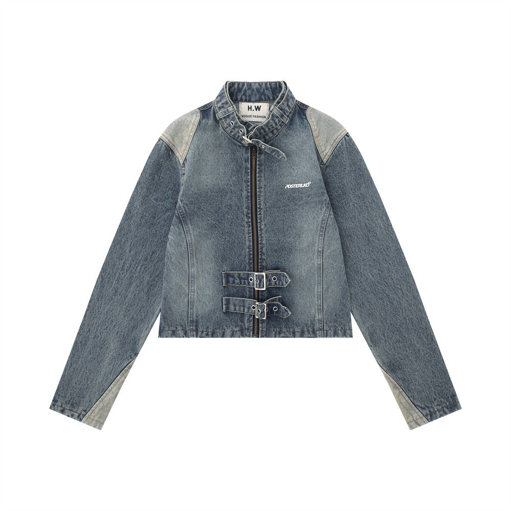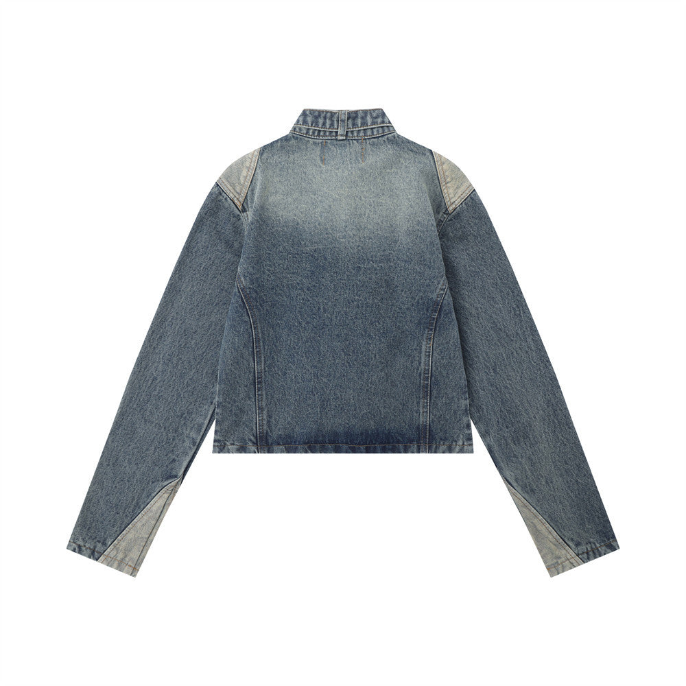 Women Jacket Denim Jacket Autumn Leisure Stand Collar Washed Zipper Cardigan Jacket