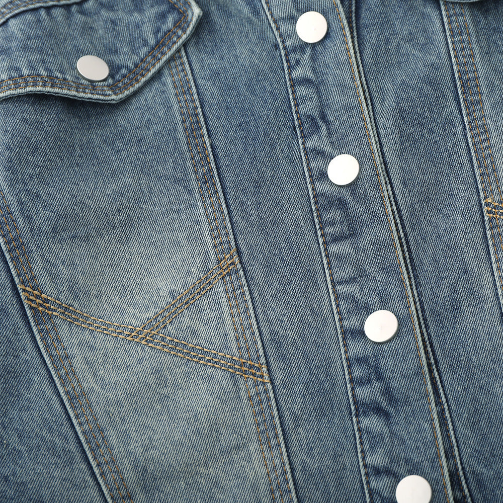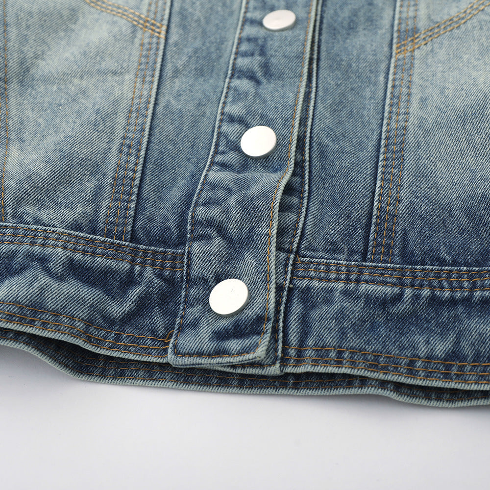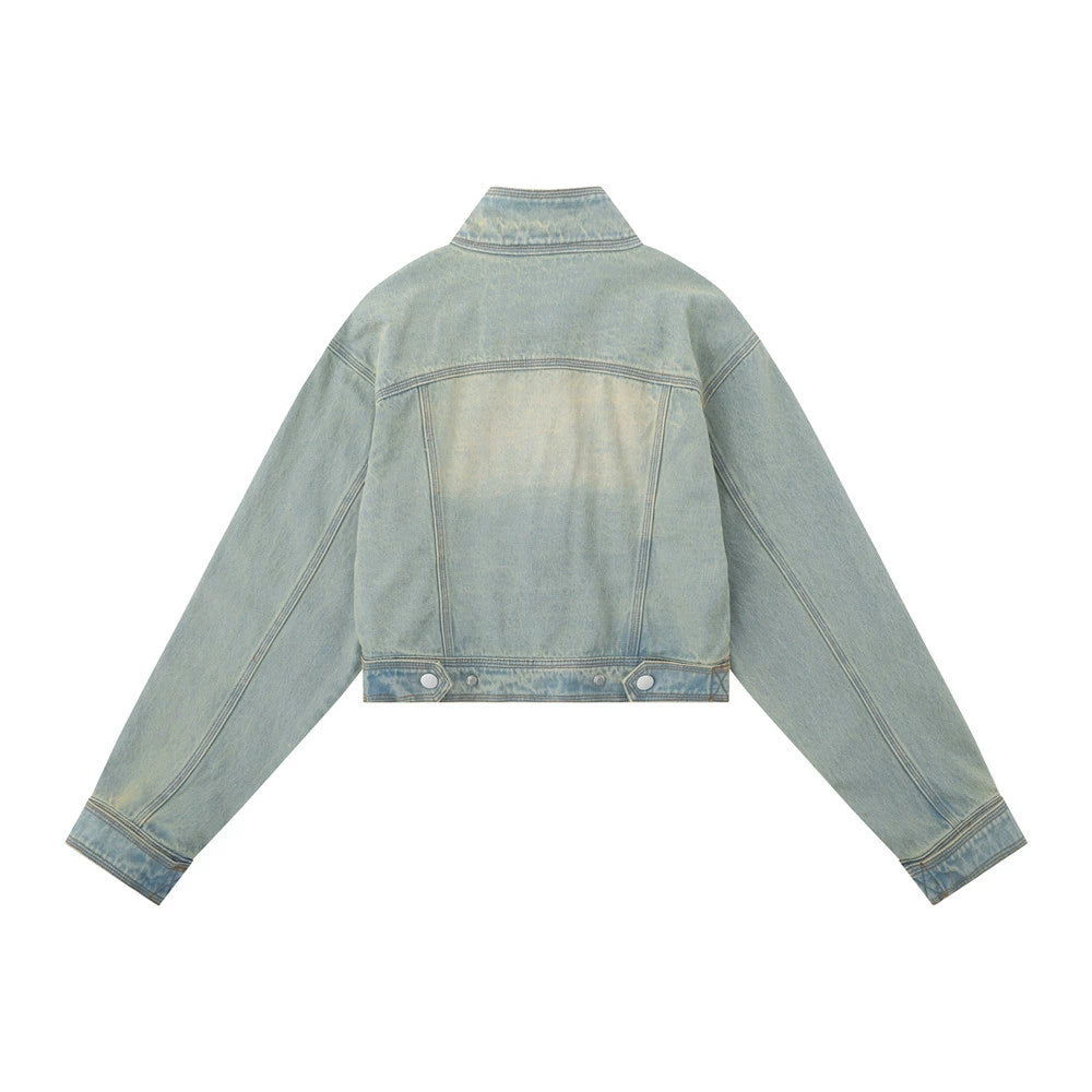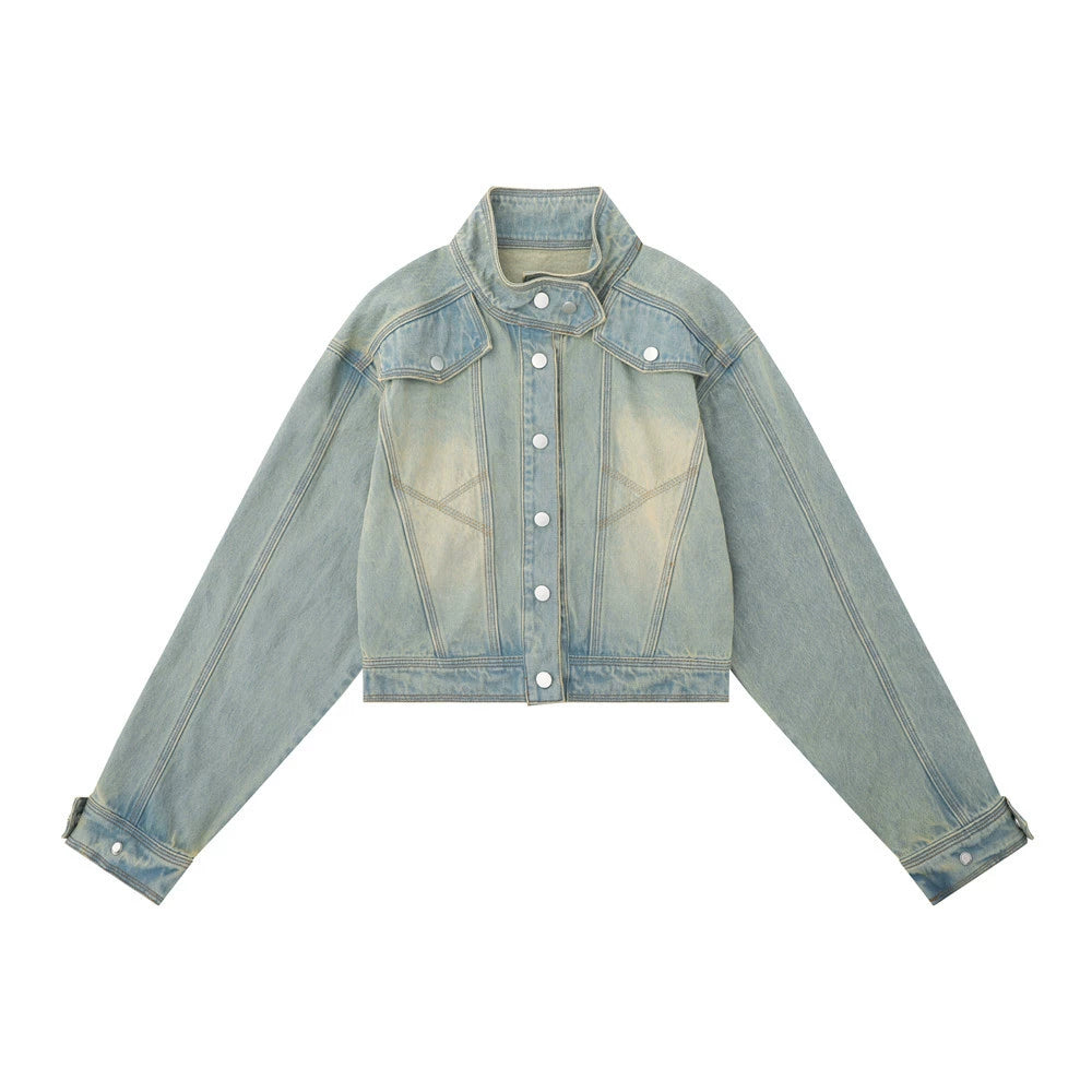Women Jacket Distressed Short Denim Jacket Autumn Leisure Stand Collar Denim Clothes Jacket