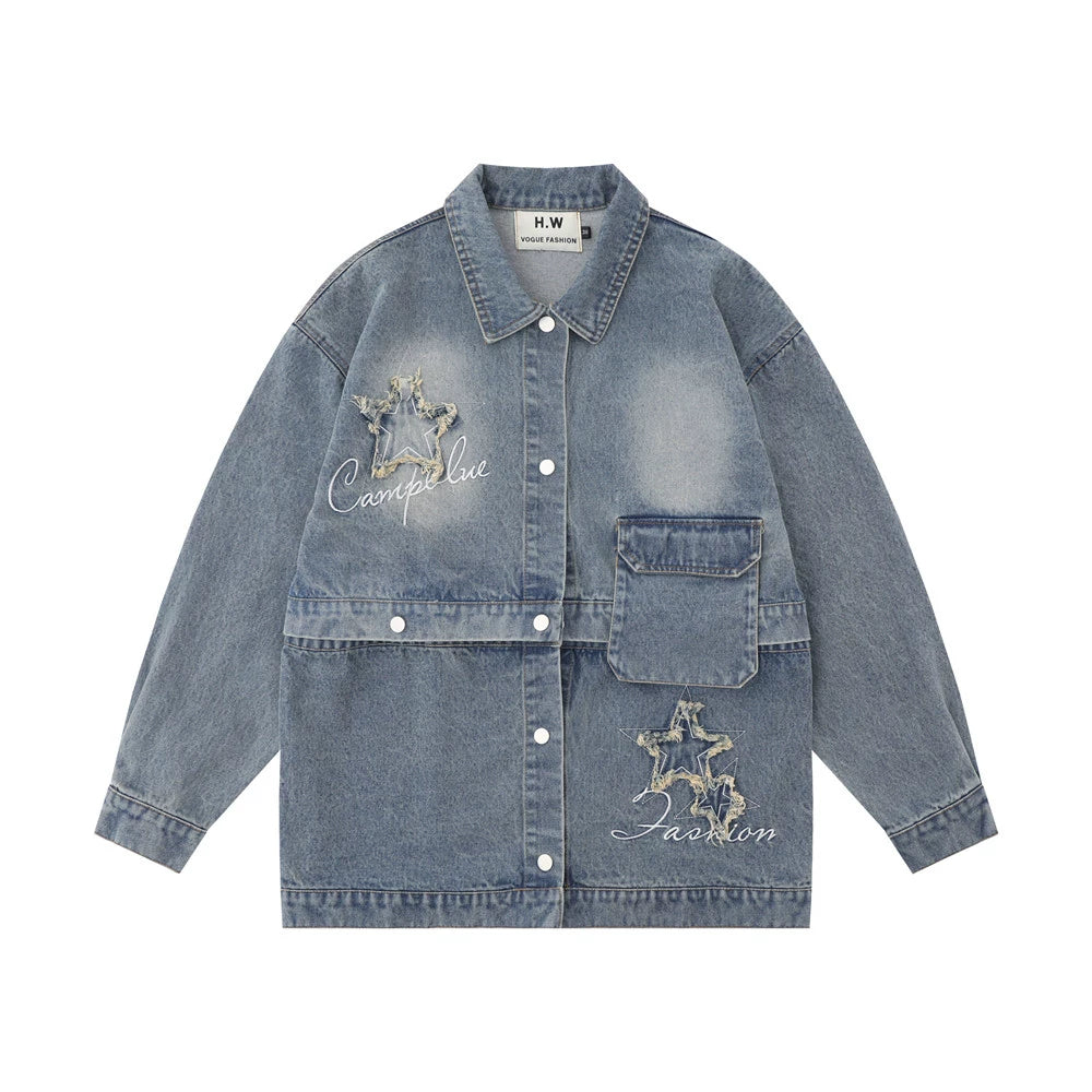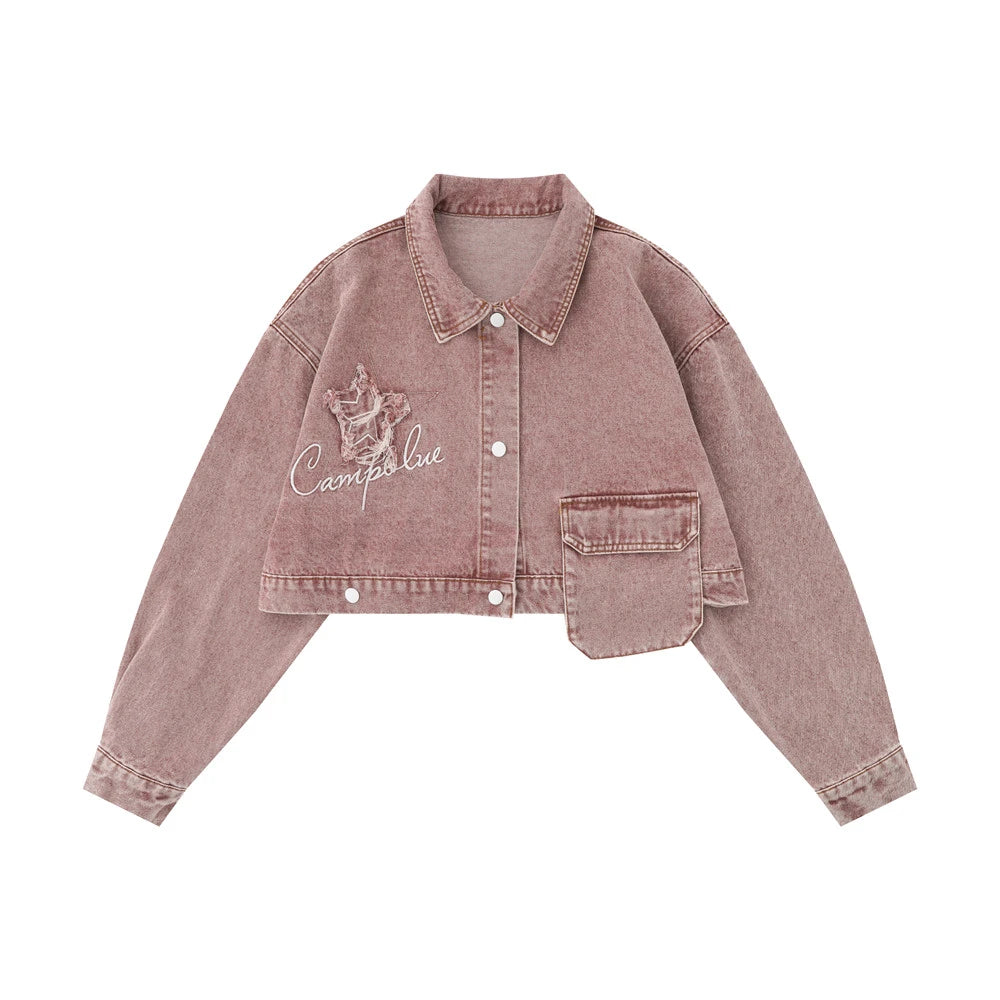 Women Jacket XINGX Affixed Cloth Embroidered Detachable Denim Jacket