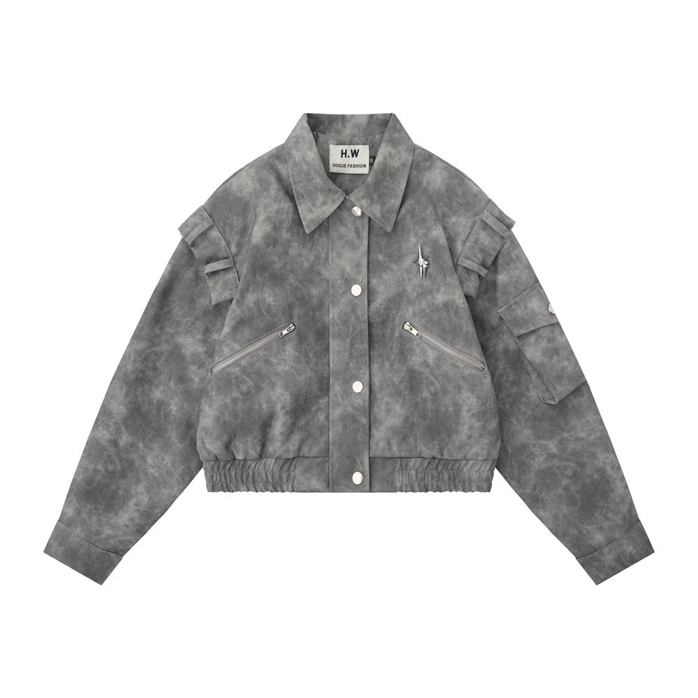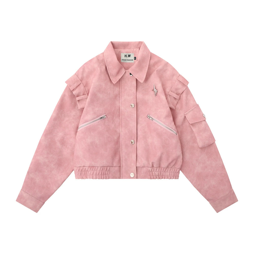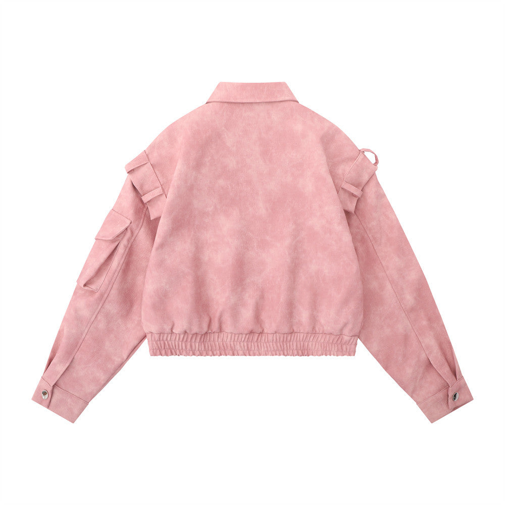 Women Jacket Pu Leather Coat Loose Zip Pocket Motorcycle Jacket