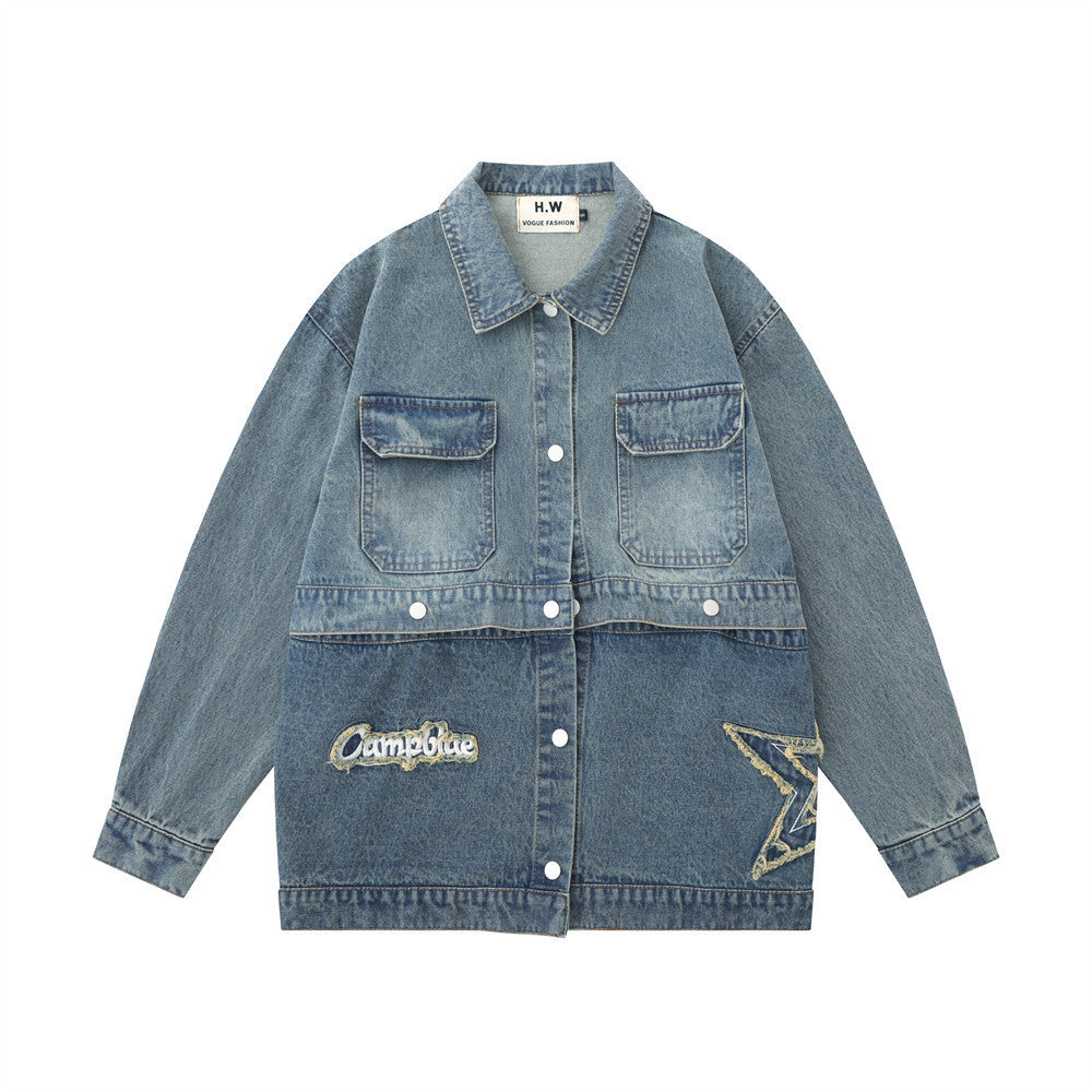 Women Jacket Detachable Two-Way Denim Jacket Embroidered Autumn Baggy Coat