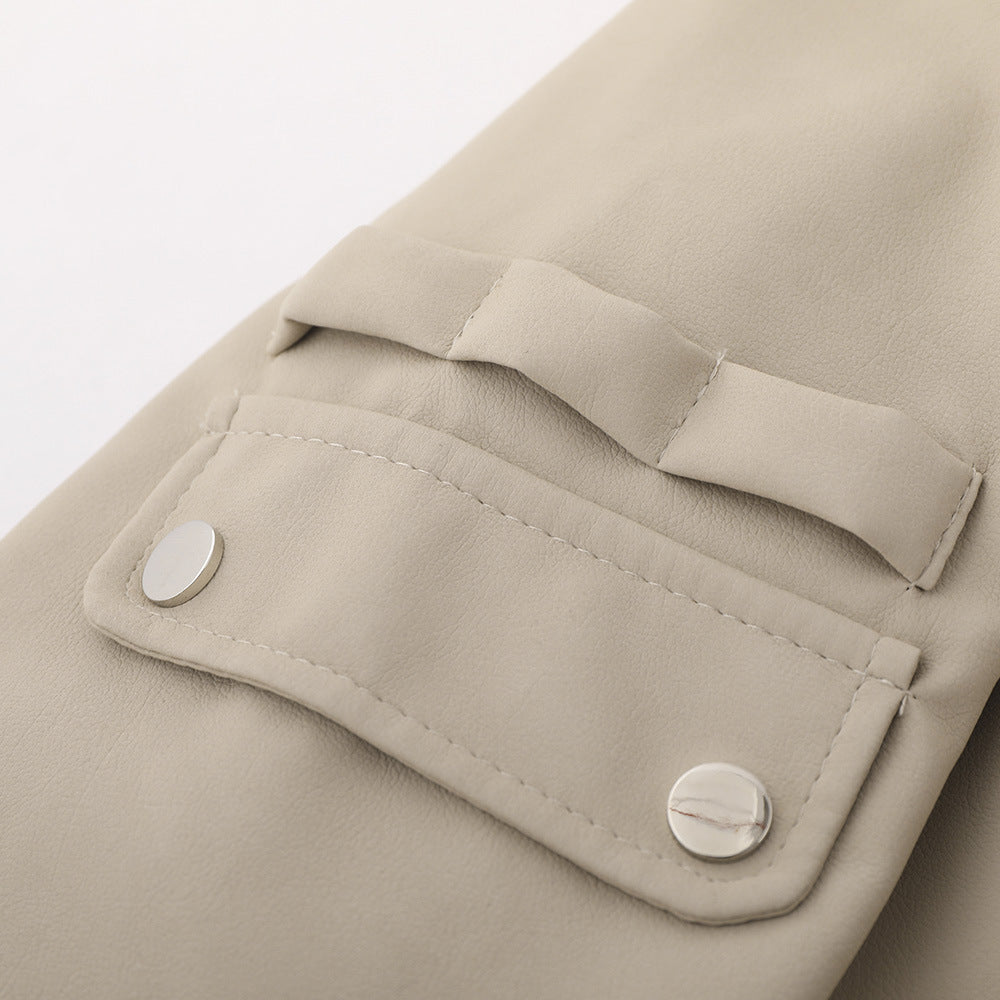 Women Jacket Short Pu Leather Jacket with Metal Buckle