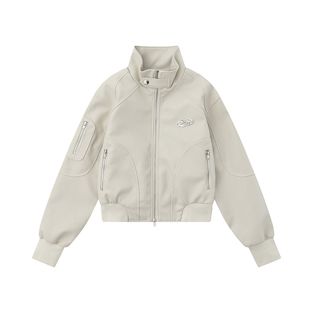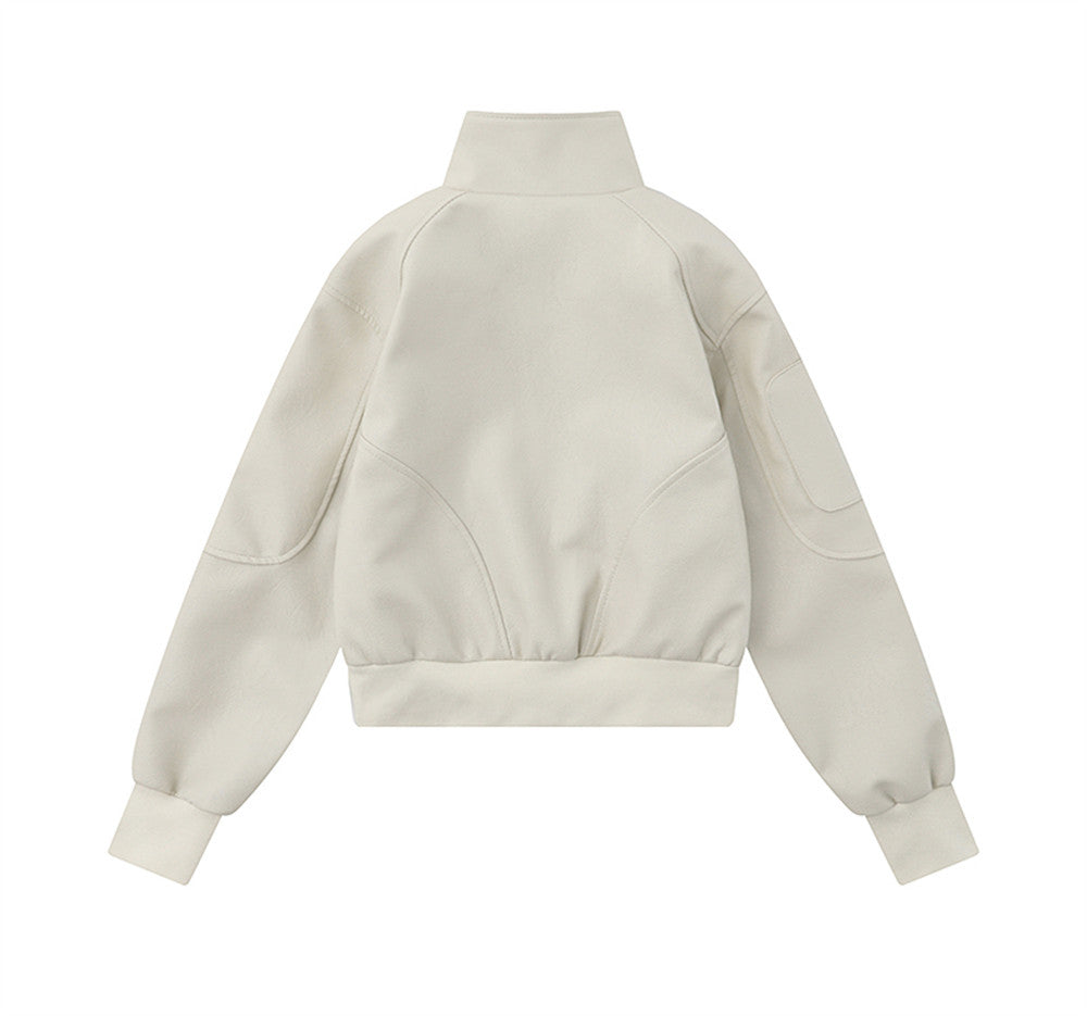Women Jacket Autumn Leisure Stand Collar Zipper Pocket Cardigan Jacket