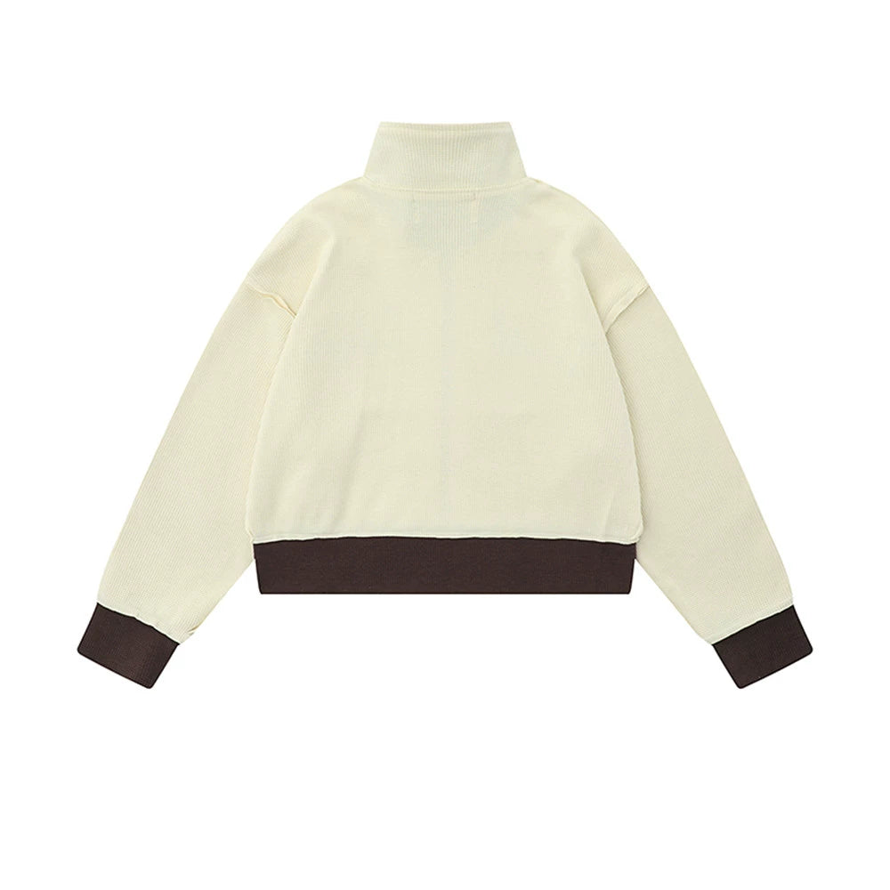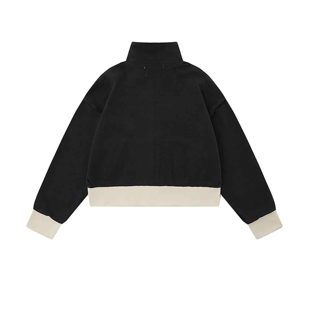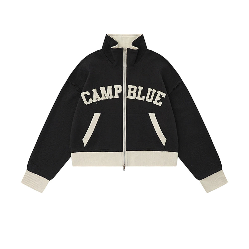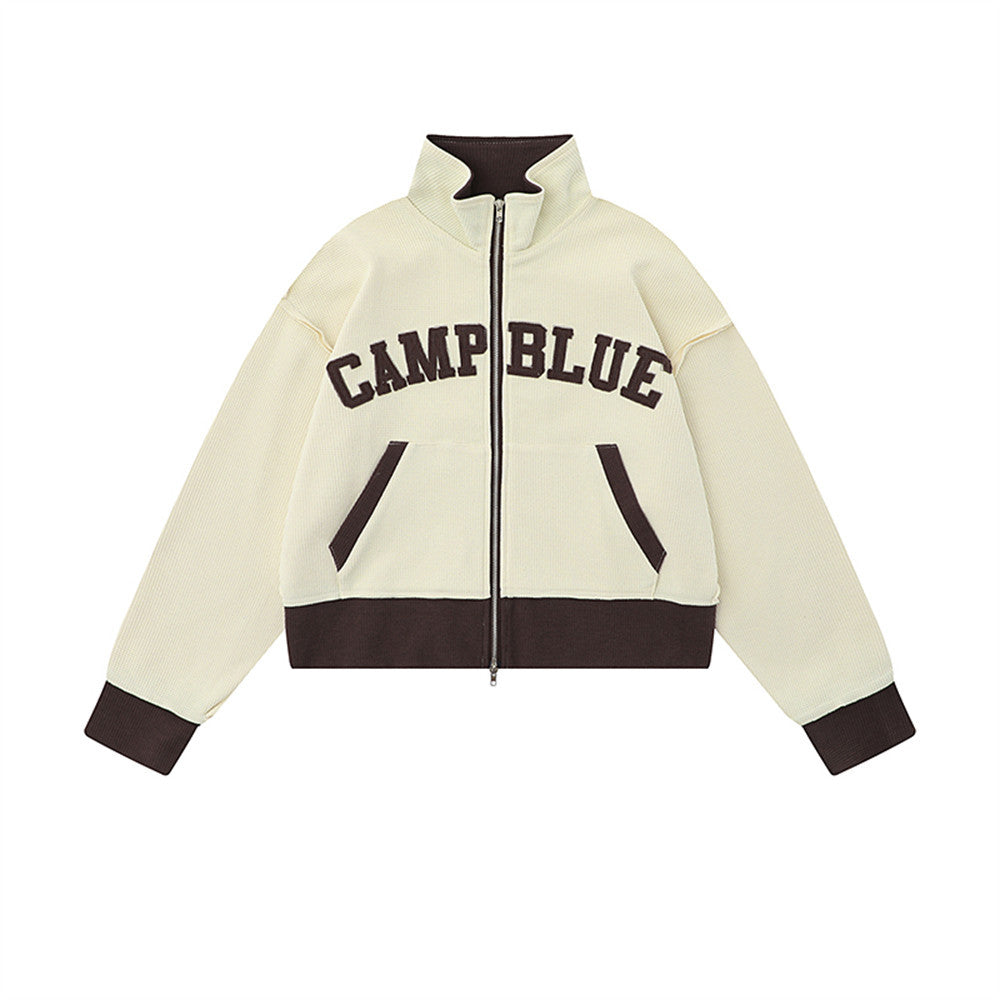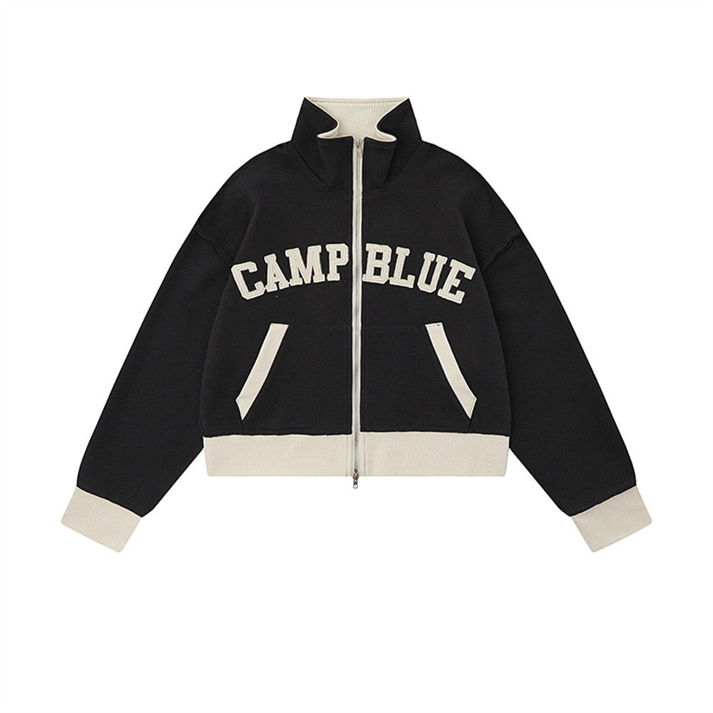 Women Jacket Letter Affixed Cloth Embroidered Turtleneck Multi-Color Coat