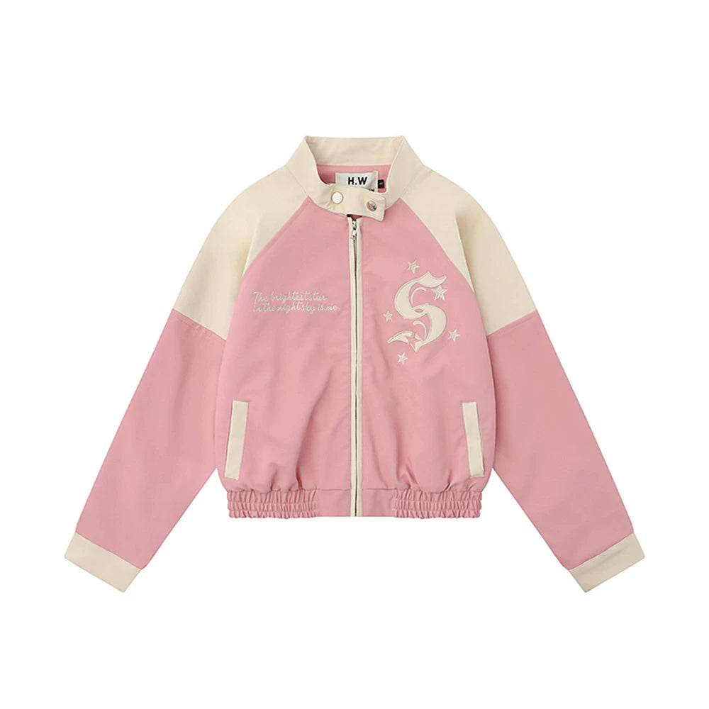 Women Jacket Fall Stand Collar Embroidery Loose Jacket Coat
