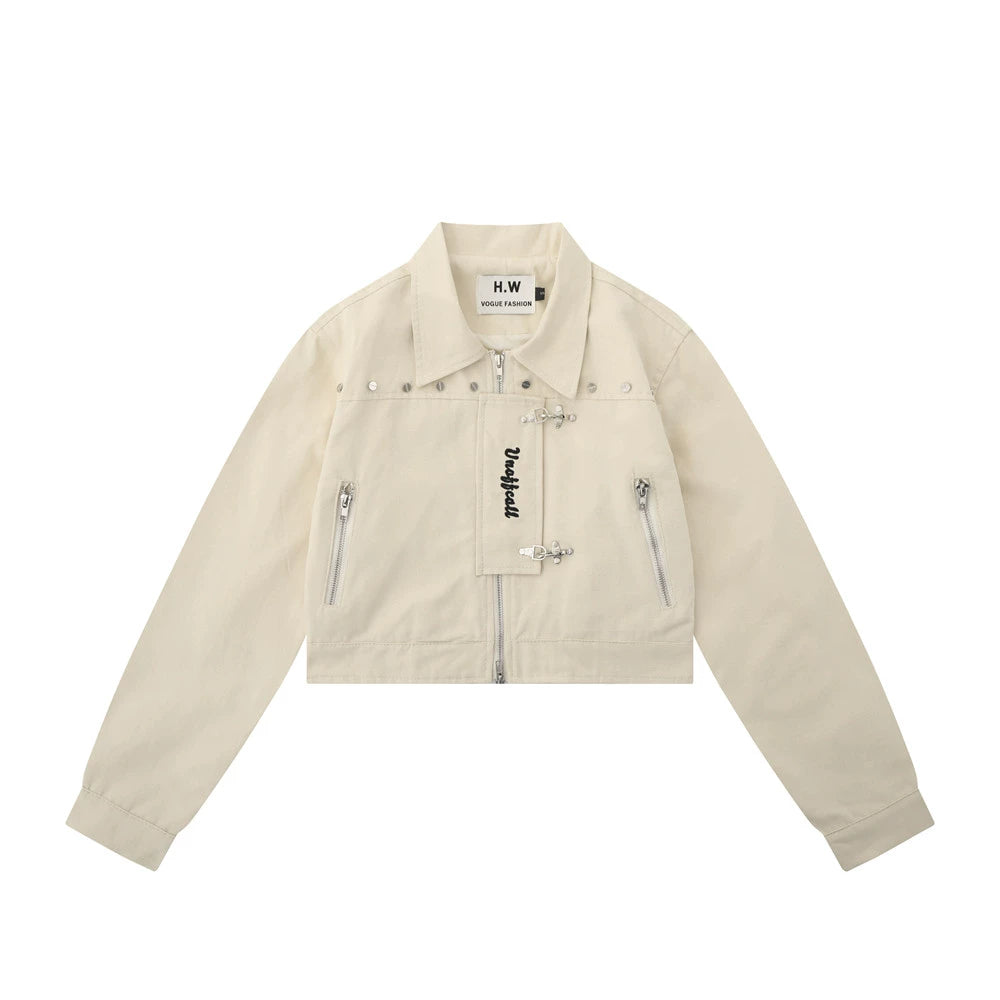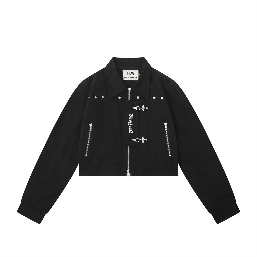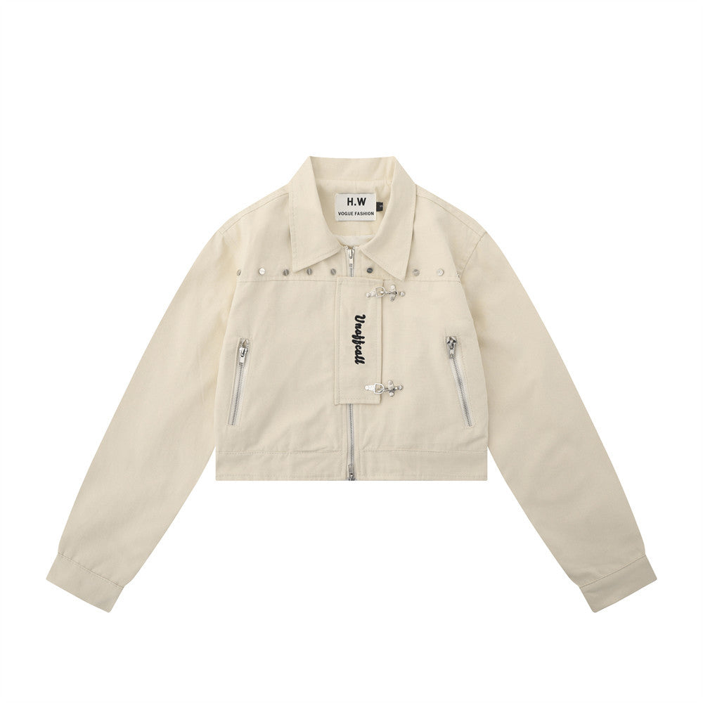 Women Jacket Loose Lapels Zipper Pocket Autumn Long Sleeve Coat