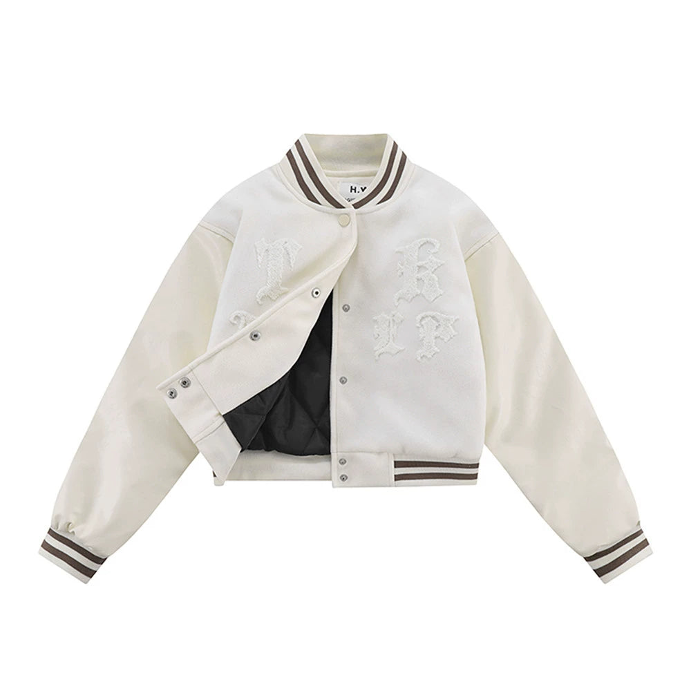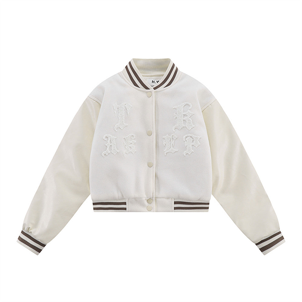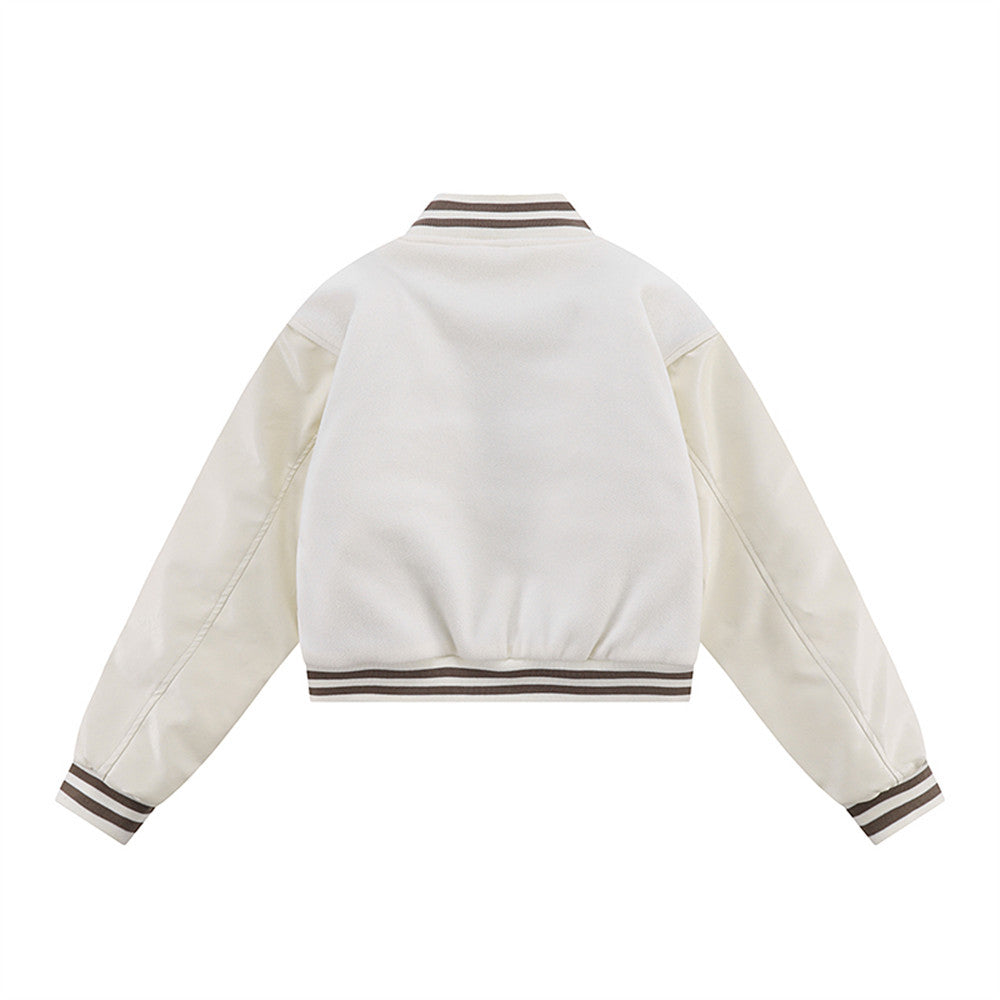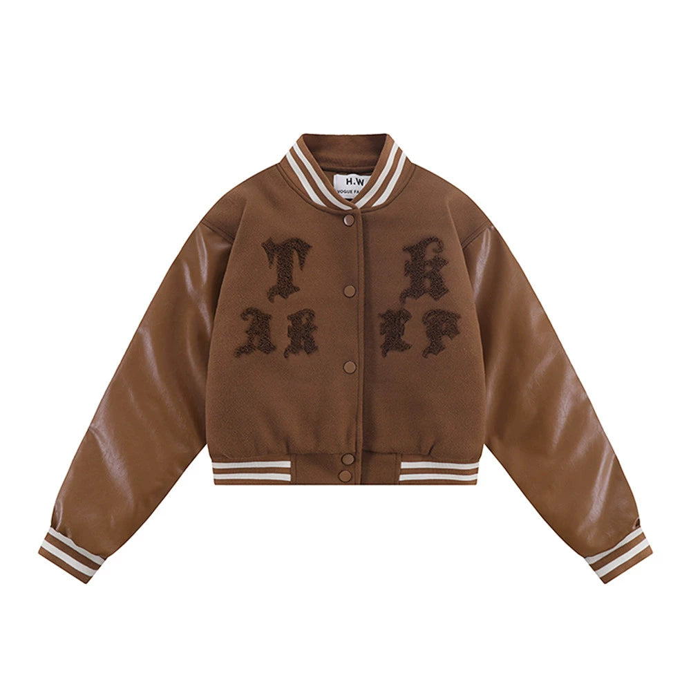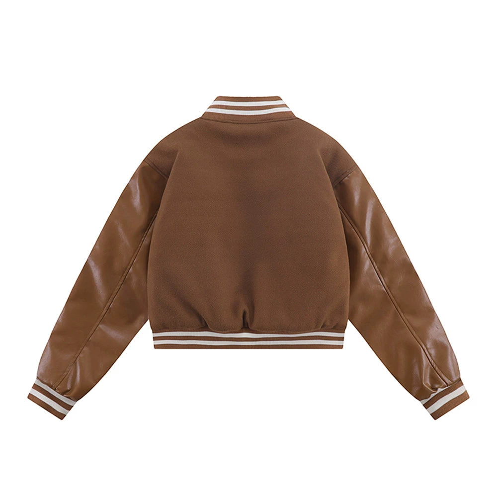 Women Jacket Baseball Uniform Winter Towel Embroidery Pu Leather Sleeves Stitching Jacket