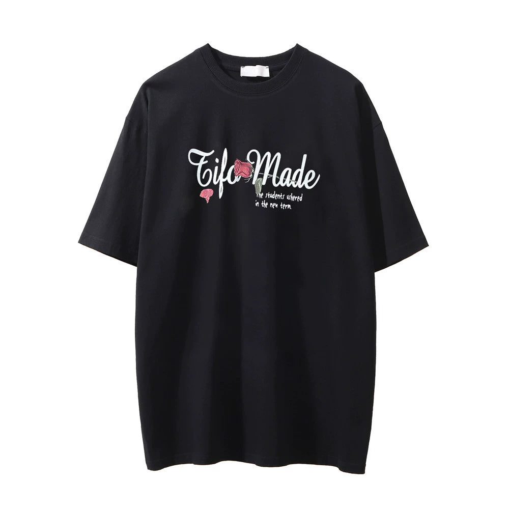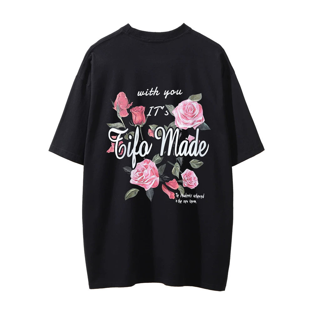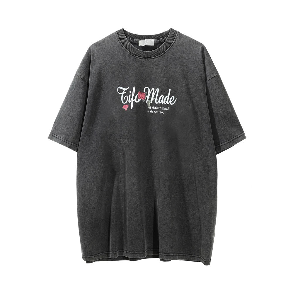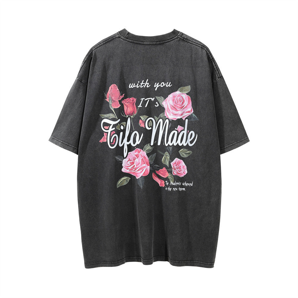 Men Vintage T-Shirt Rose Printed Short Sleeve T-shirt