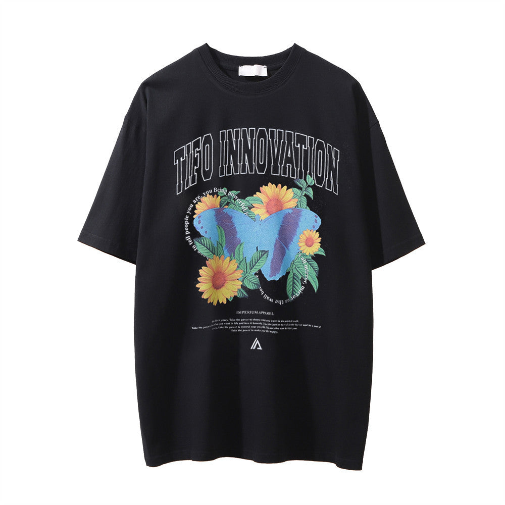 Men Vintage T-Shirt Sunflower Plant Print Short Sleeve T-shirt