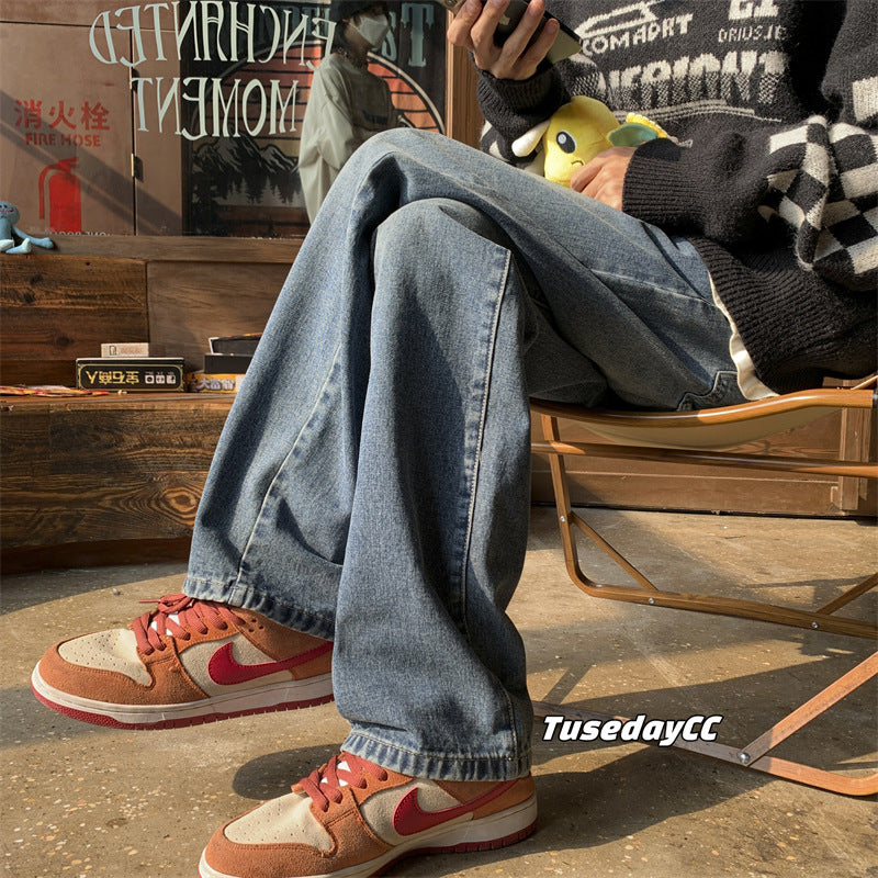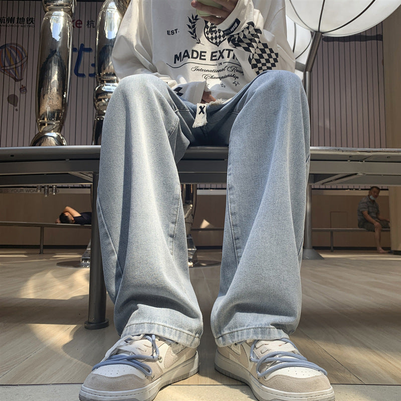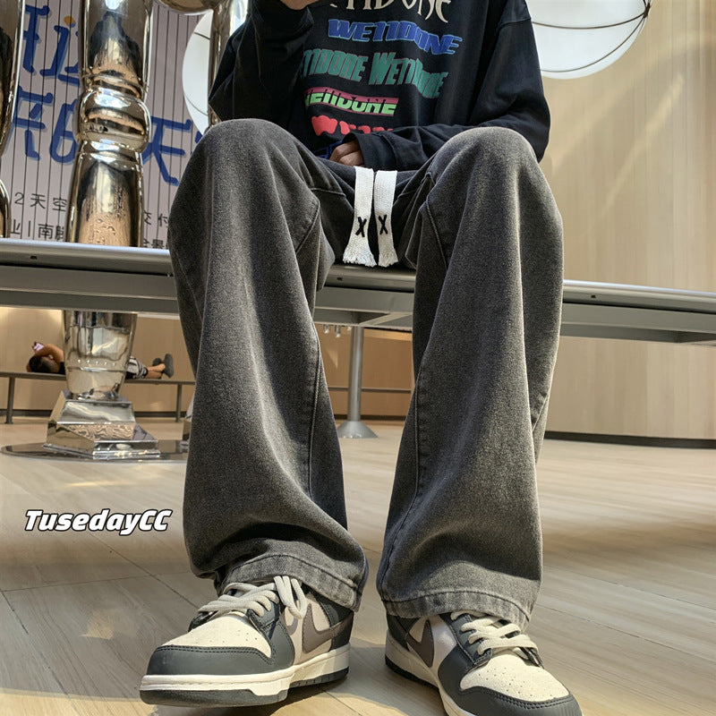 Men Jeans Black Jeans Oversize Loose Straight Drooping Wide Leg Pants
