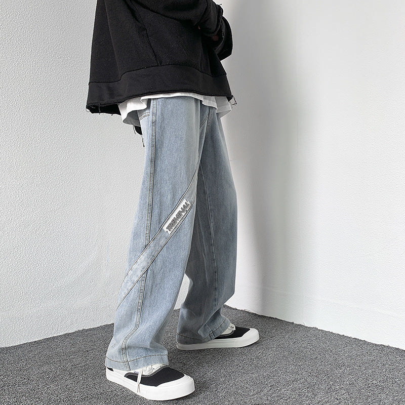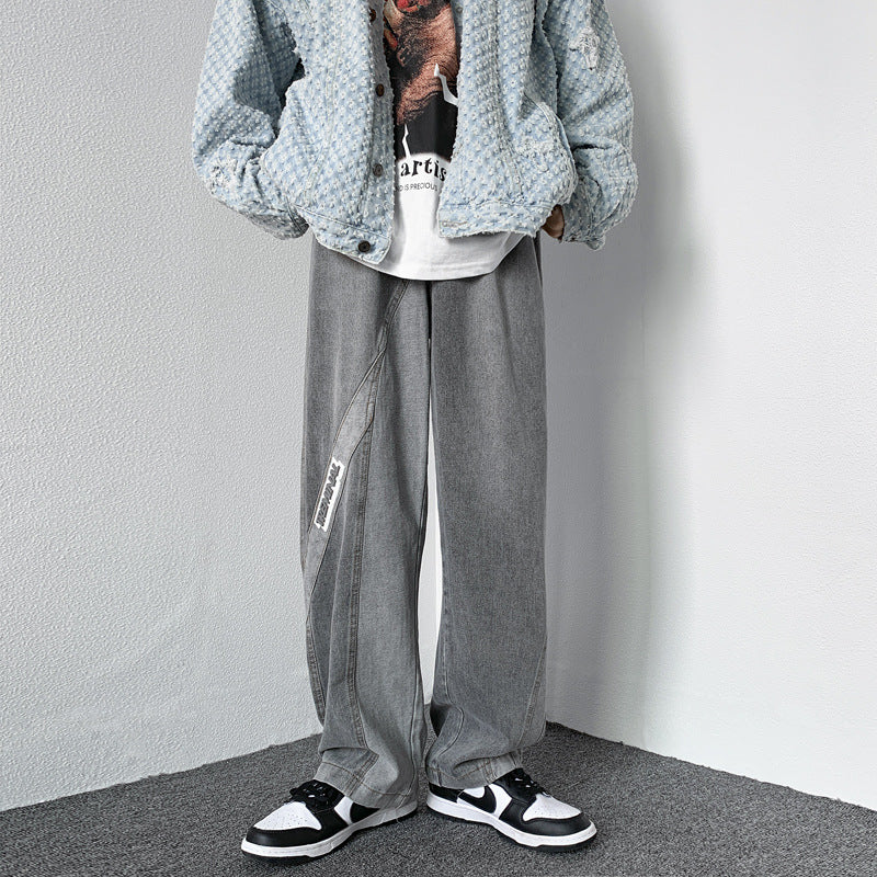 Men Jeans Washed Jeans Men's Casual Trousers Straight Loose Wide Leg Pants