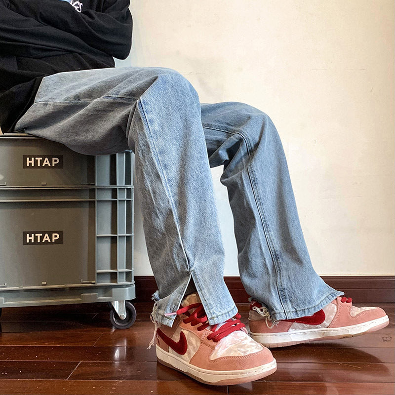 Men Jeans Split Slightly Flared Jeans Tie-Dye Wide-Leg Pants