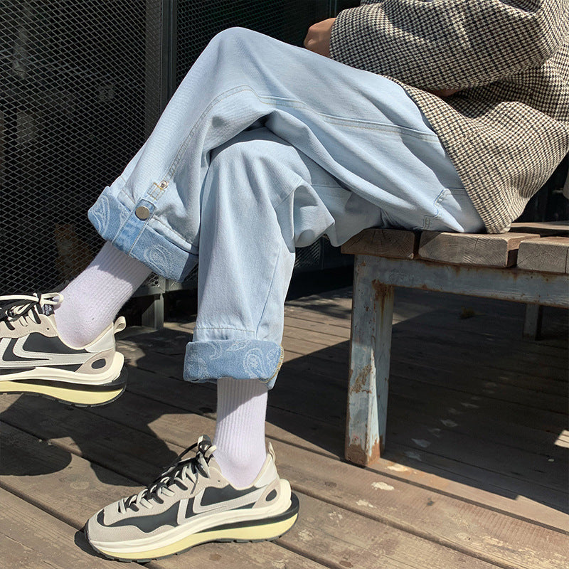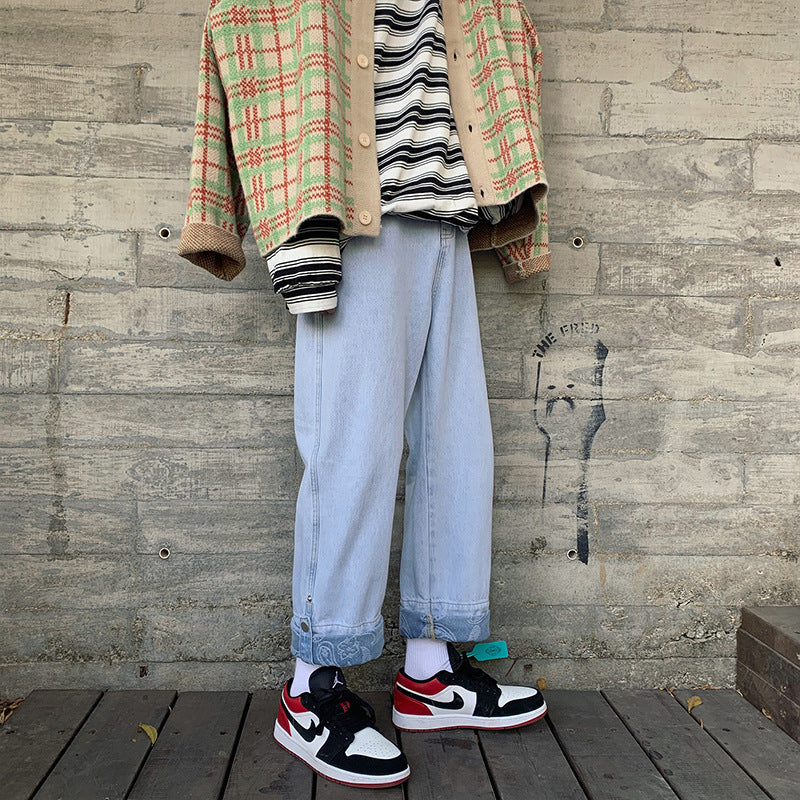 Men Jeans Autumn Vintage Jeans Men's Straight Loose Wide Leg Old Pants