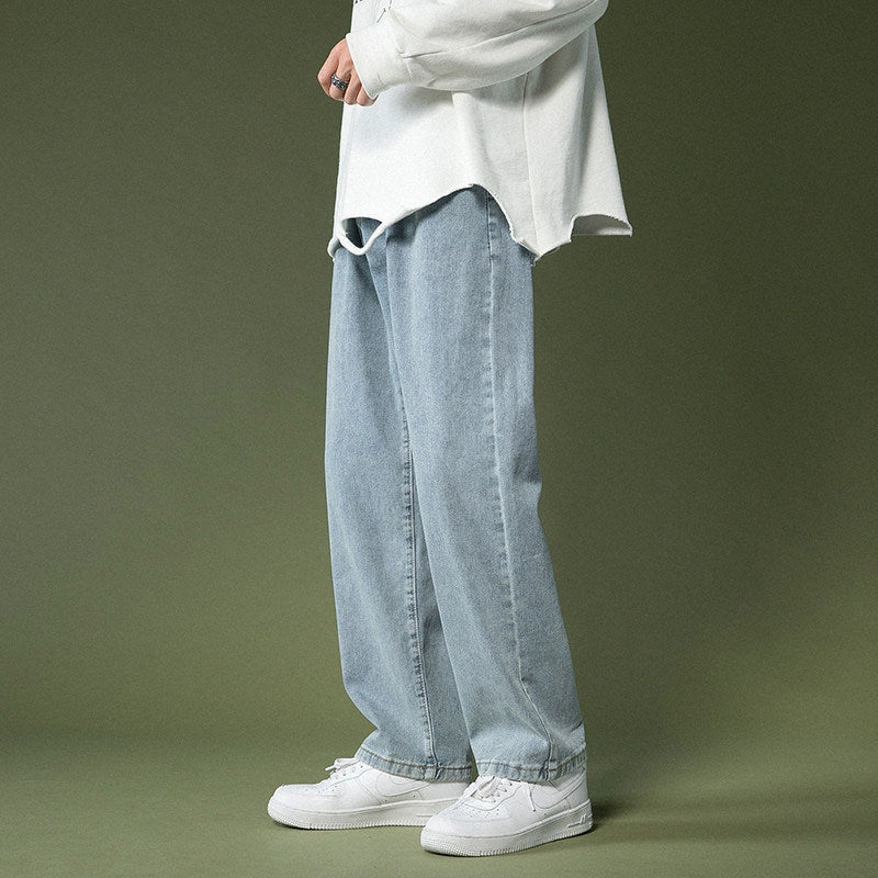 Men Jeans Straight Loose Summer Boys Casual Trousers