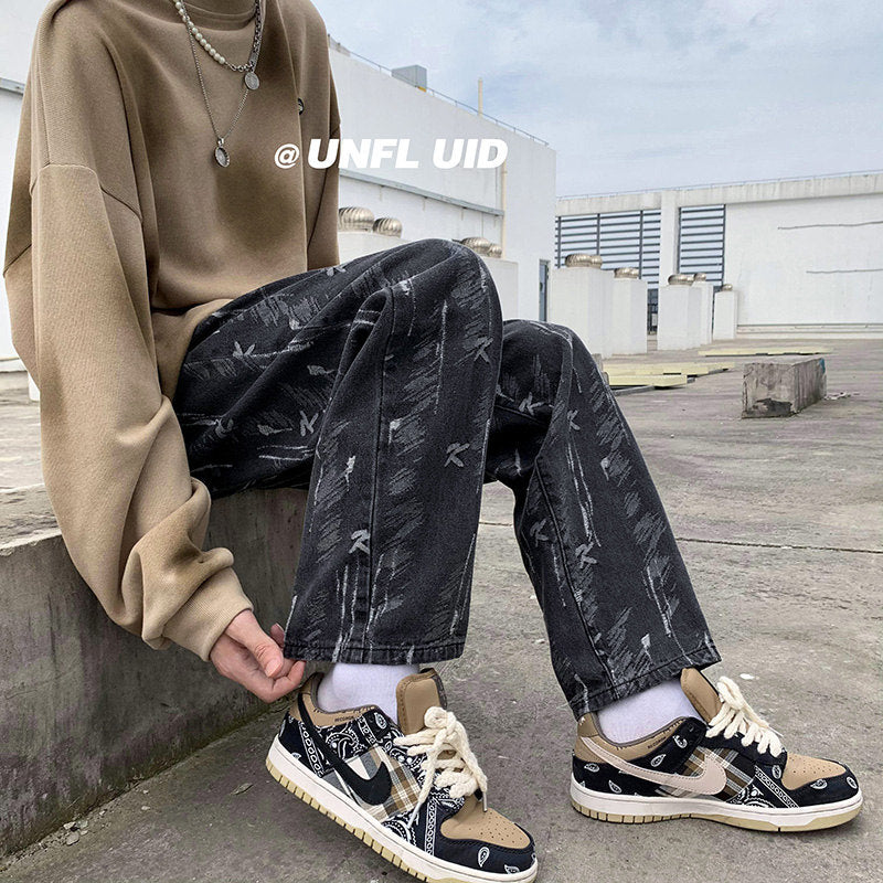Men Jeans Loose Oversize Wide Leg Pants Denim Trousers