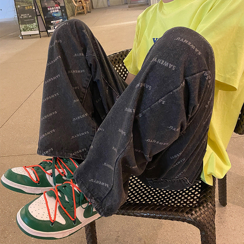 Men Jeans Straight-Leg Denim Trousers Men's Loose Summer Wide-Leg Pants