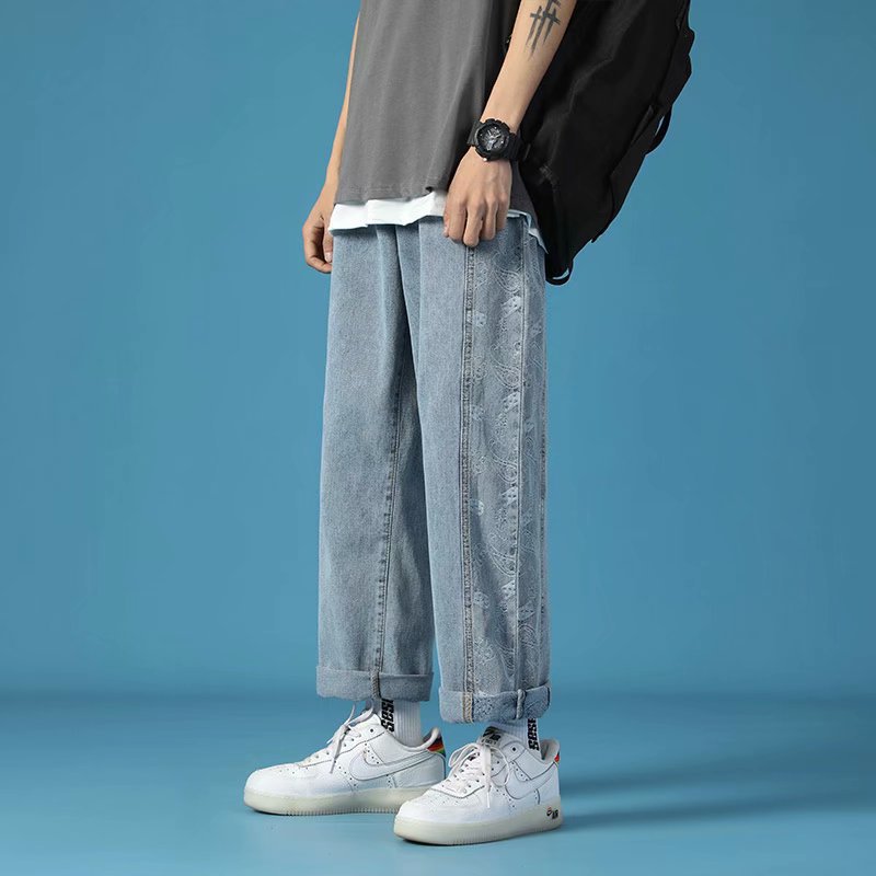Men Jeans Paisley Jeans Summer Loose Casual Pants Retro Straight-Leg Pants