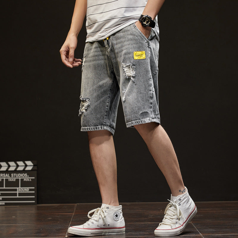 Men Jeans Denim Shorts Men's Summer Loose Straight Shorts