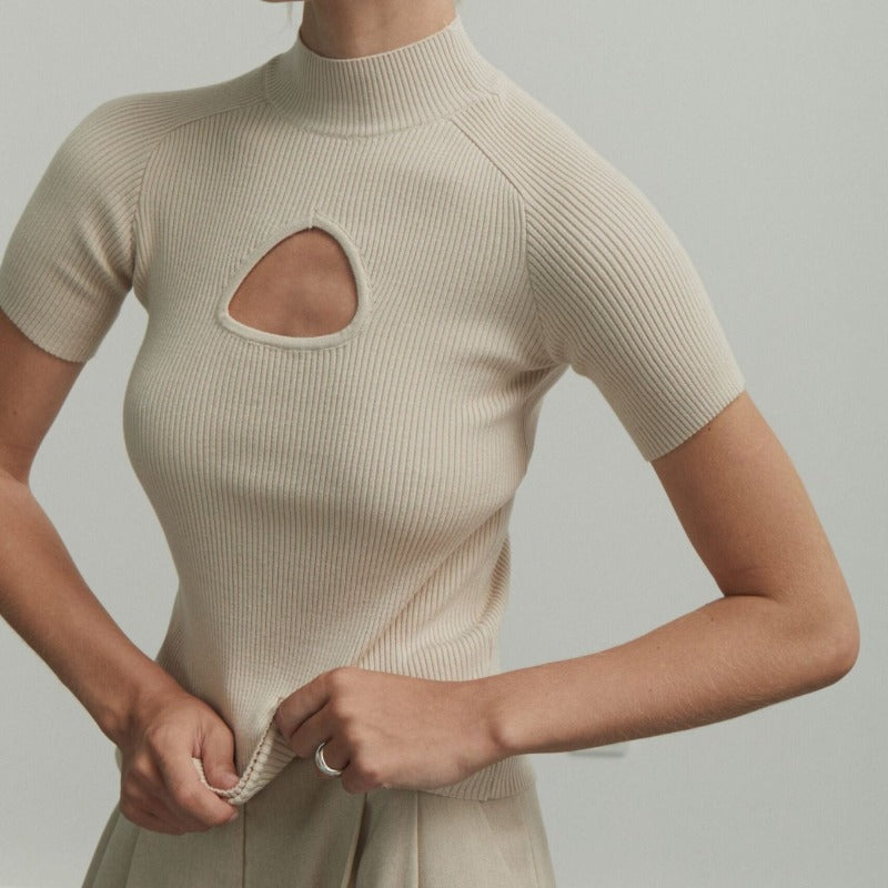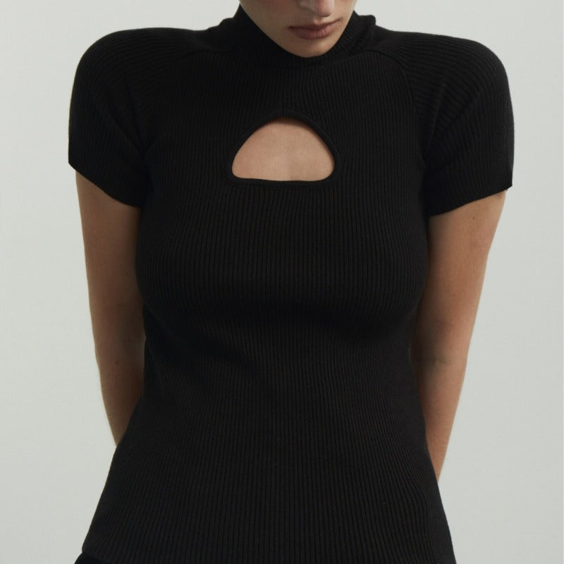 Women Knit Top Sexy Short Sleeve Knitwear Thread Knitted Top
