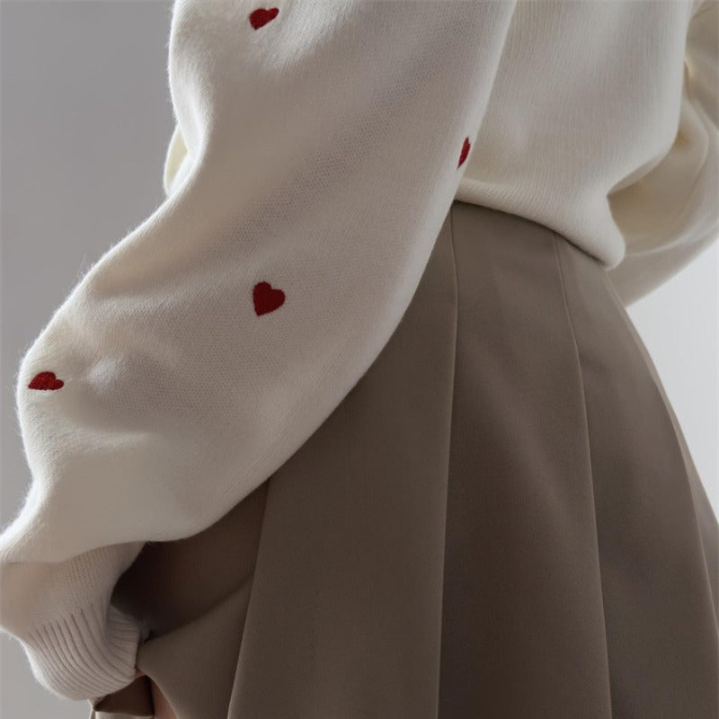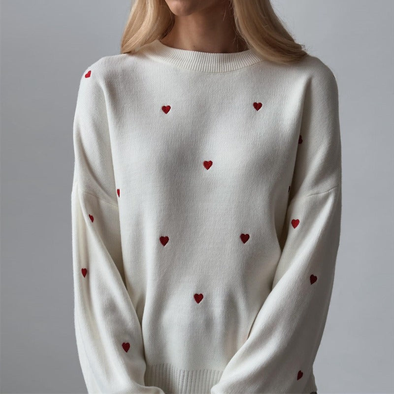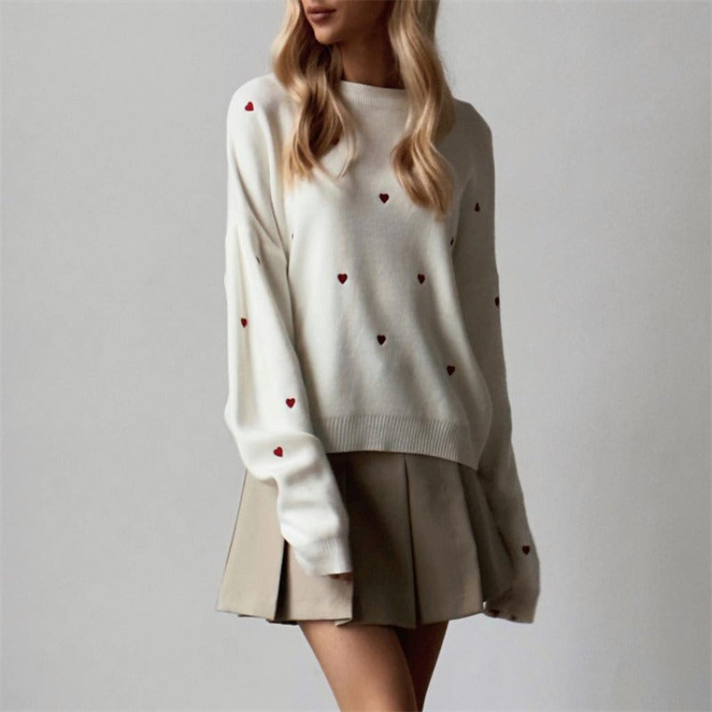Ladies Leisure Knitwear Love Embroidered Long Sleeve Knitted Sweater for Women