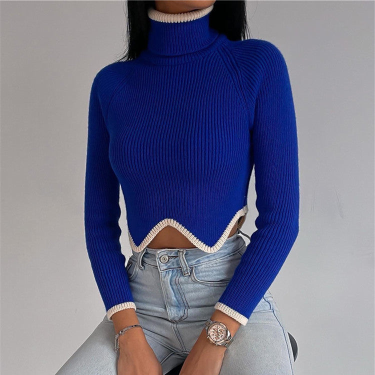 Ladies Leisure Knitwear Long Sleeve Turtleneck Skinny Knitted Top