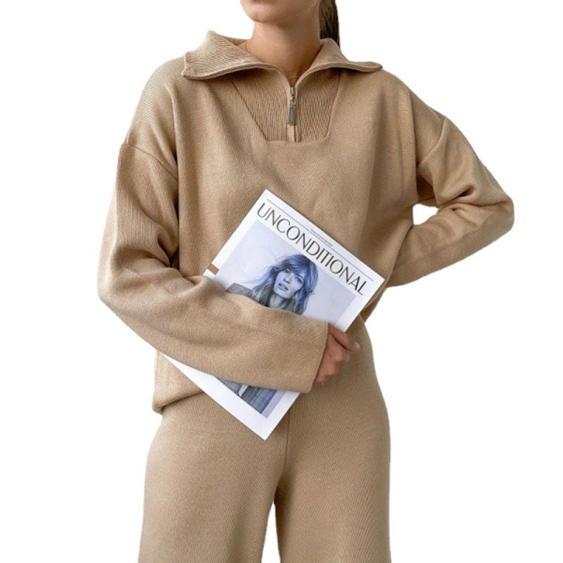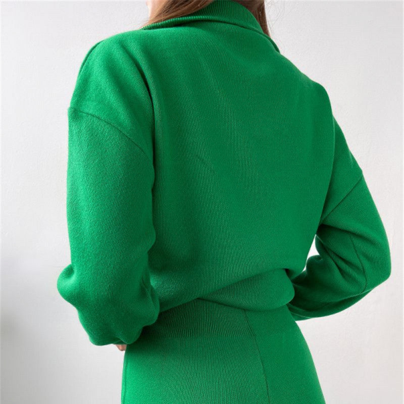 Ladies Leisure Knitwear Polo Collar Sweater Zipper and Lapel Knitwear