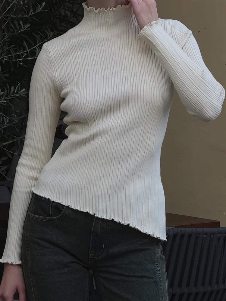 Ladies Leisure Knitwear Skinny Knit Bottoming Shirt Autumn and Winter Long-Sleeved Shirt