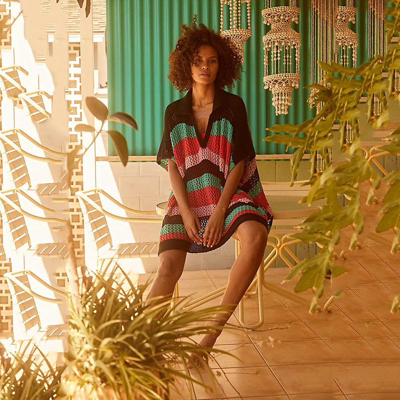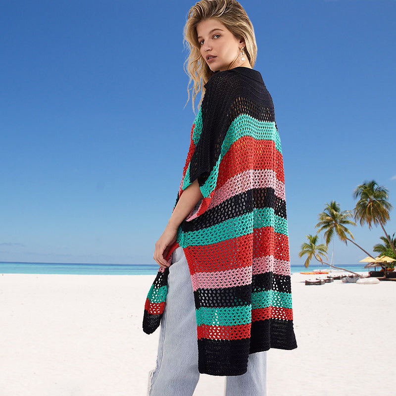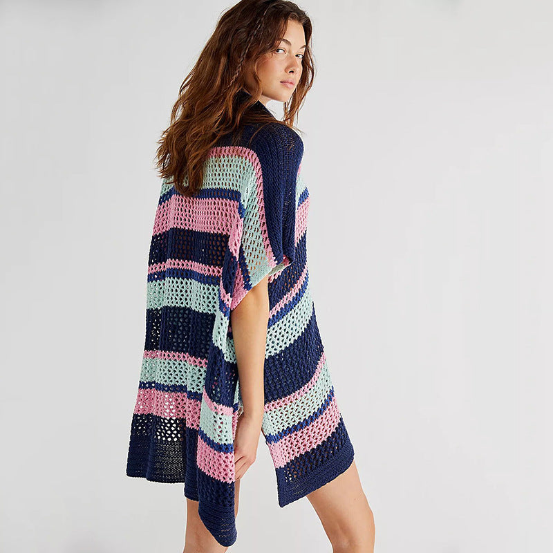 Women Knit Beach Cover V-neck Half Sleeve Cutout Beach Bikini Sun Protection Shirt