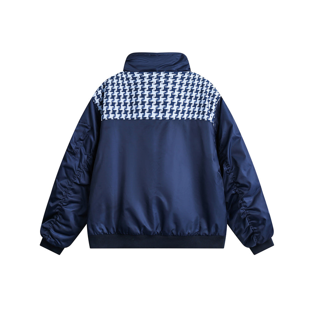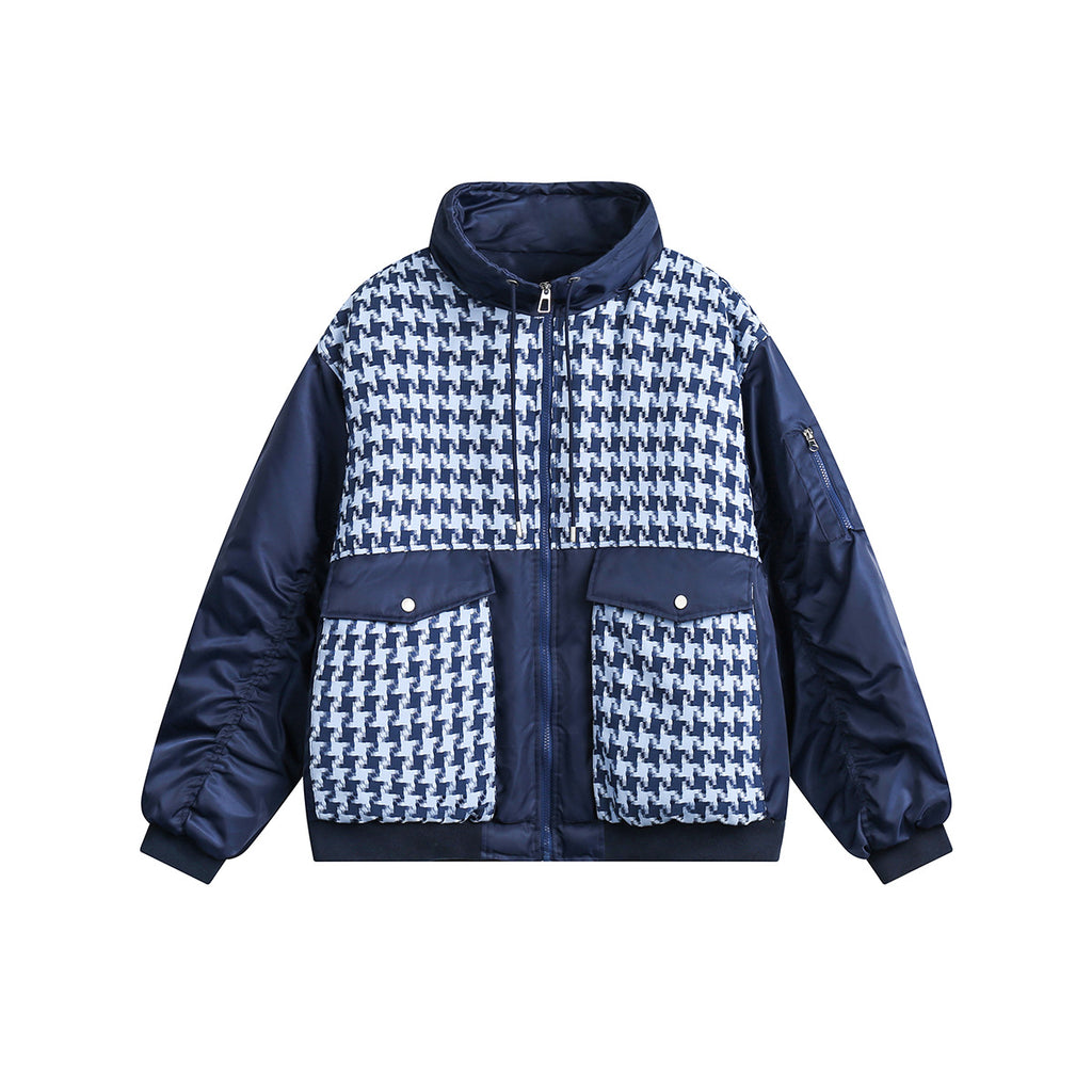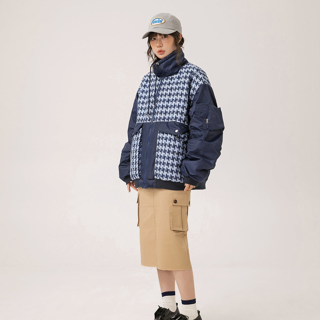 Unisex Jacket Winter Houndstooth Casual Patchwork Cotton-Padded Coat