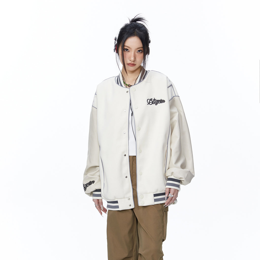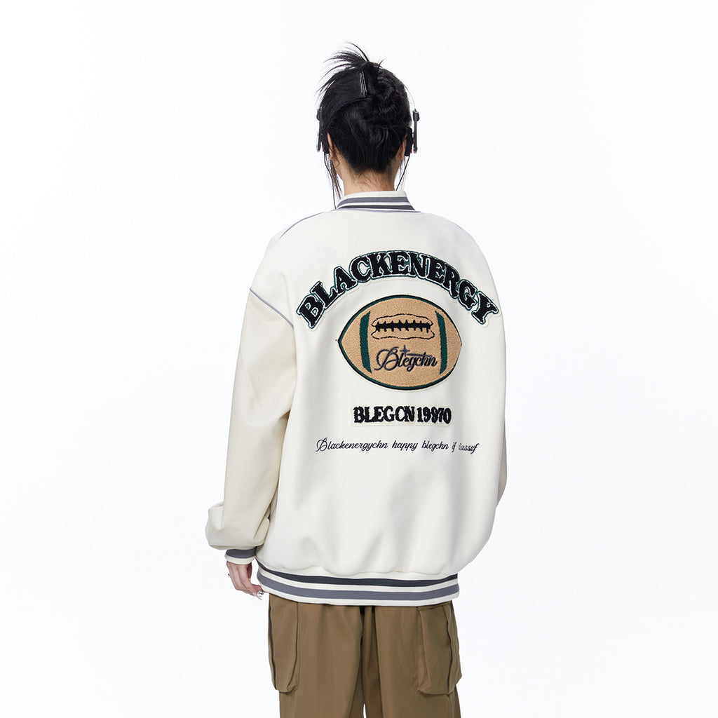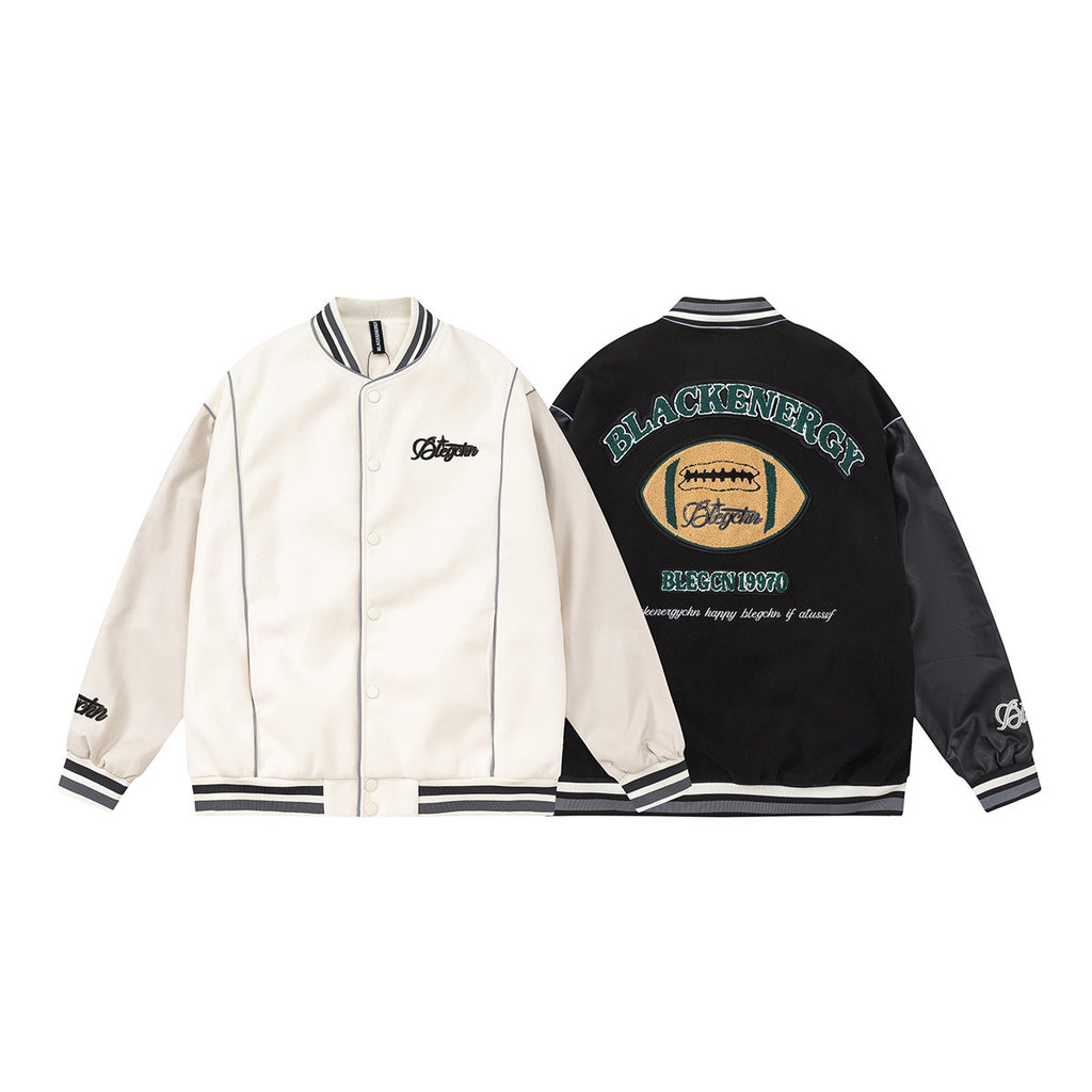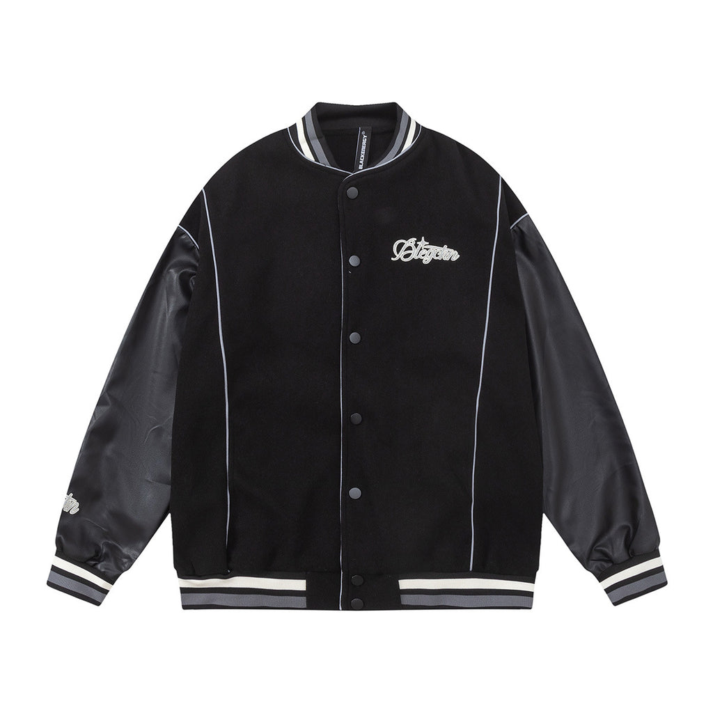 Unisex Jacket Autumn Pu Stitching Rugby Jacket