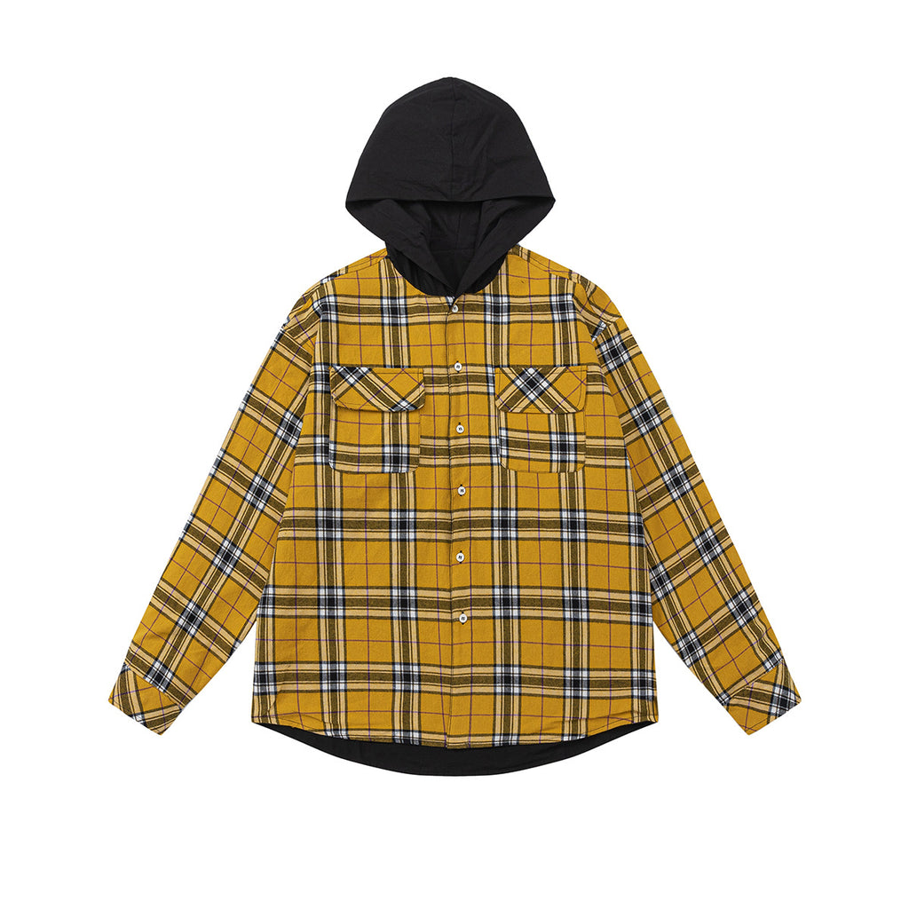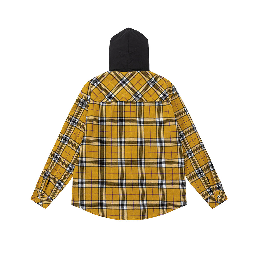 Unisex Jacket Autumn Two-Way Plaid Hooded Shirt