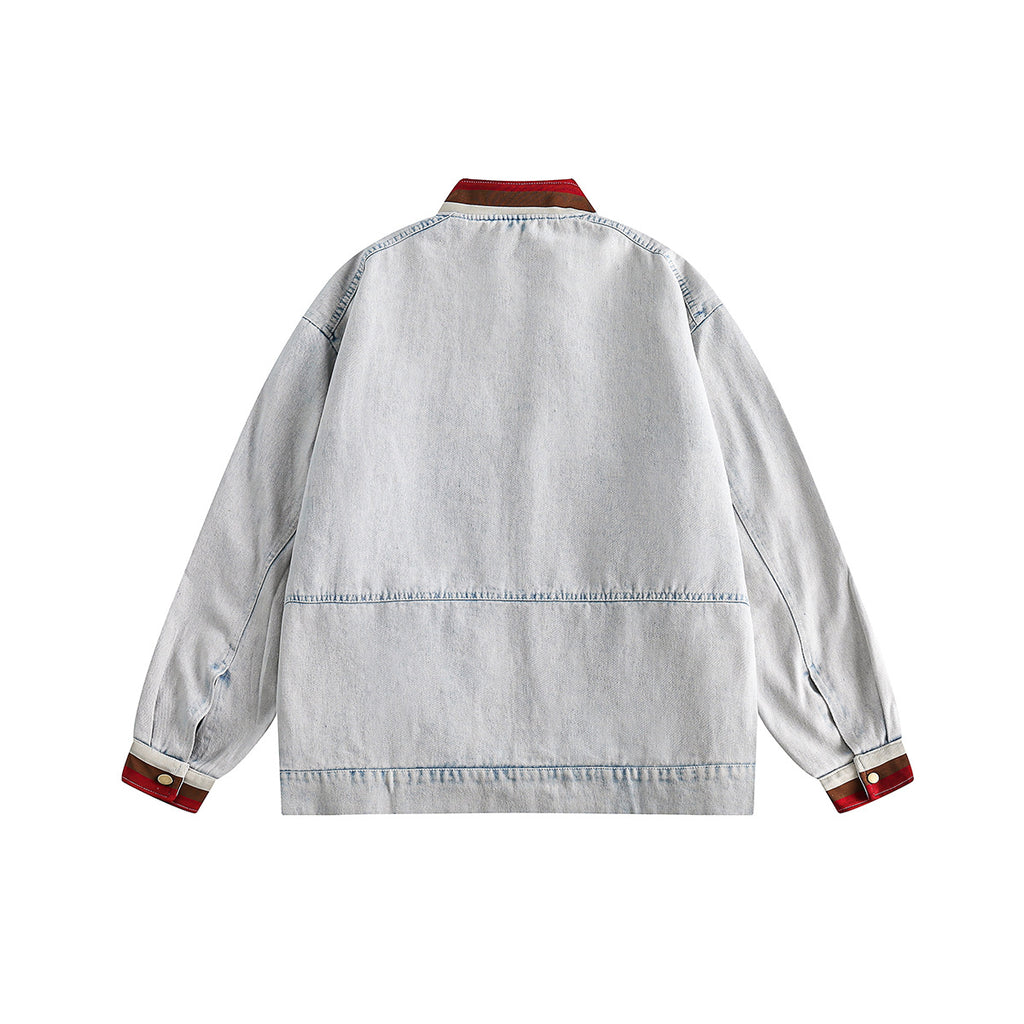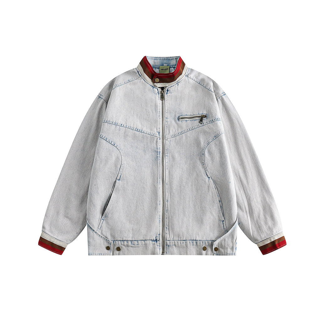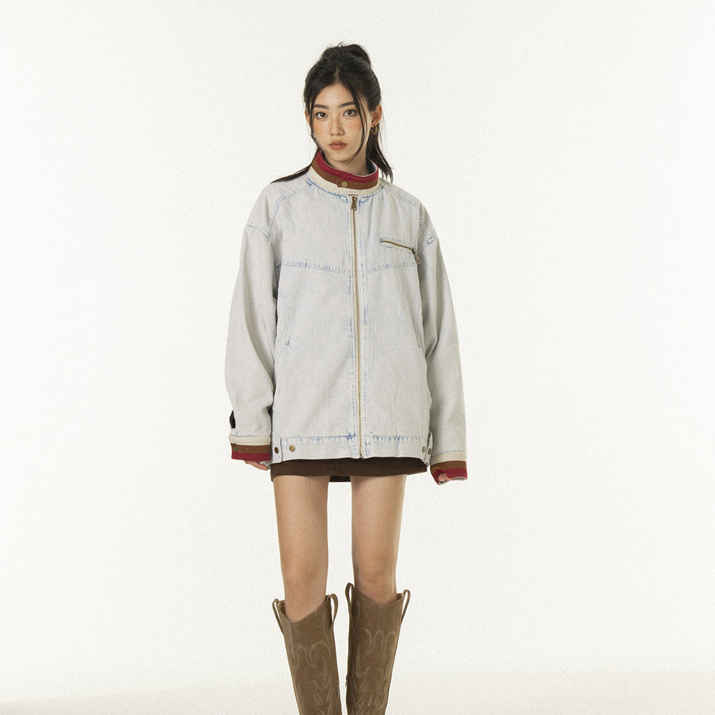 Unisex Jacket Autumn Vintage Stand Collar Denim Jacket