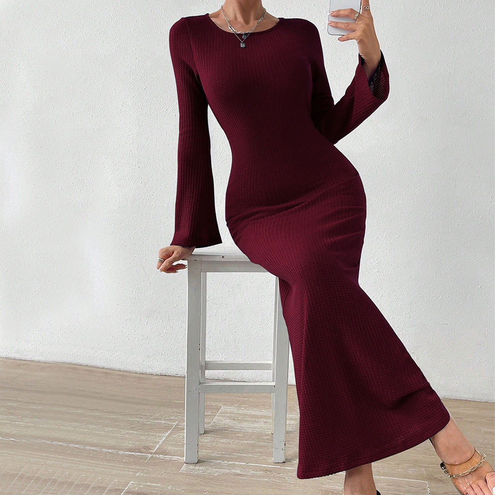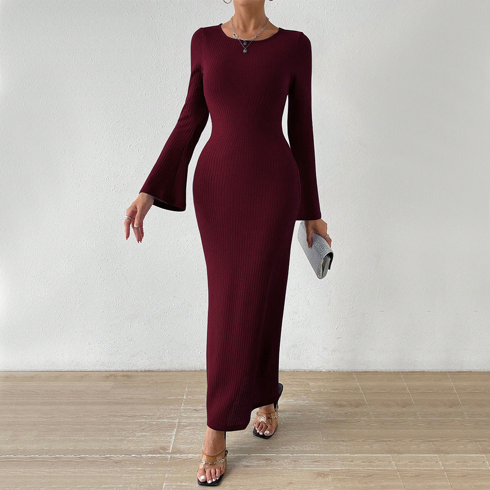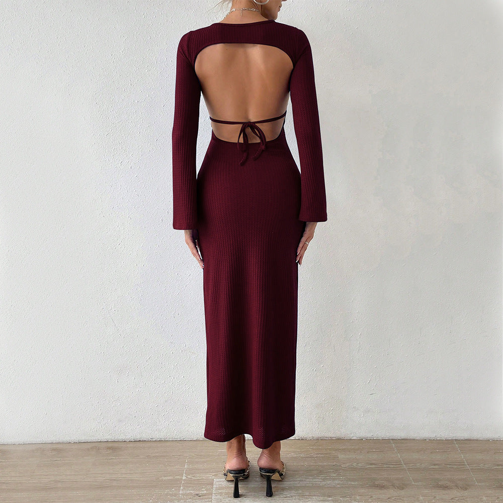 Women Dress Autumn and Winter Sheath Dress Long Sleeve Sexy Backless Dress