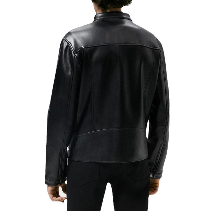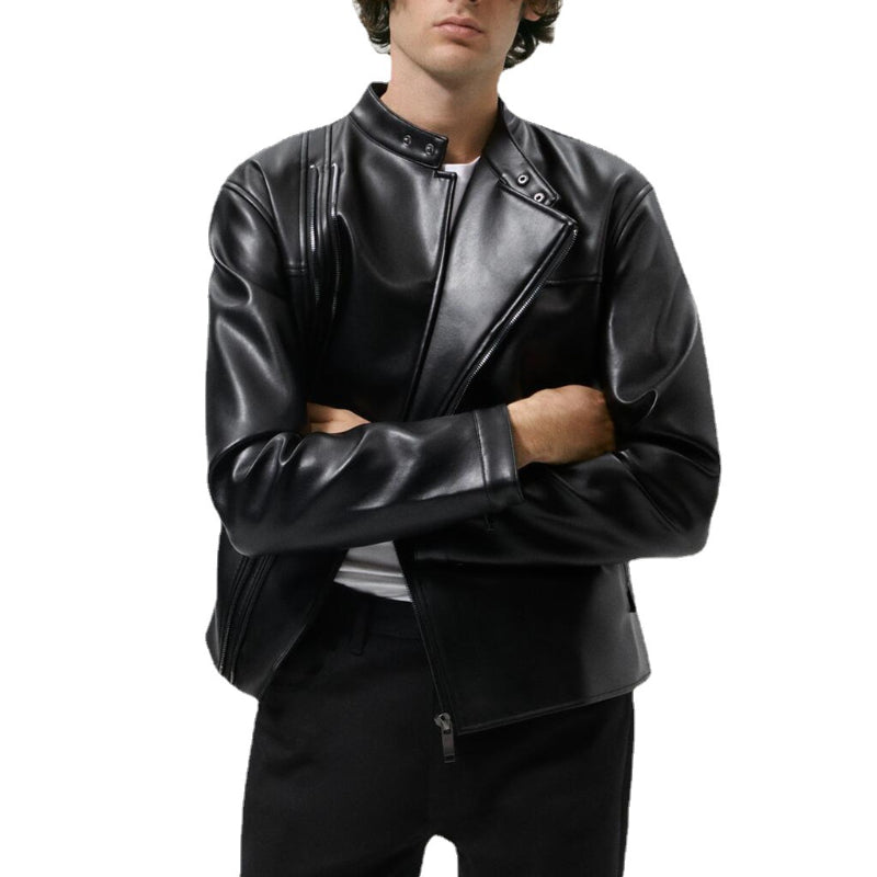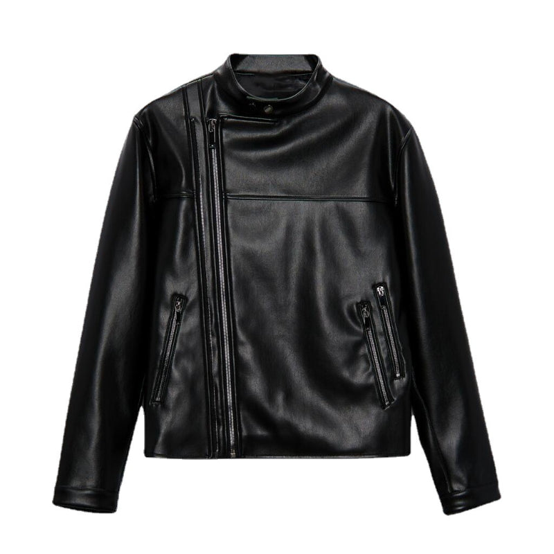 Men Motorcycle Jacket Autumn and Winter Imitation Leather Motorcycle Oblique Zipper Jacket Coat Leather Coat