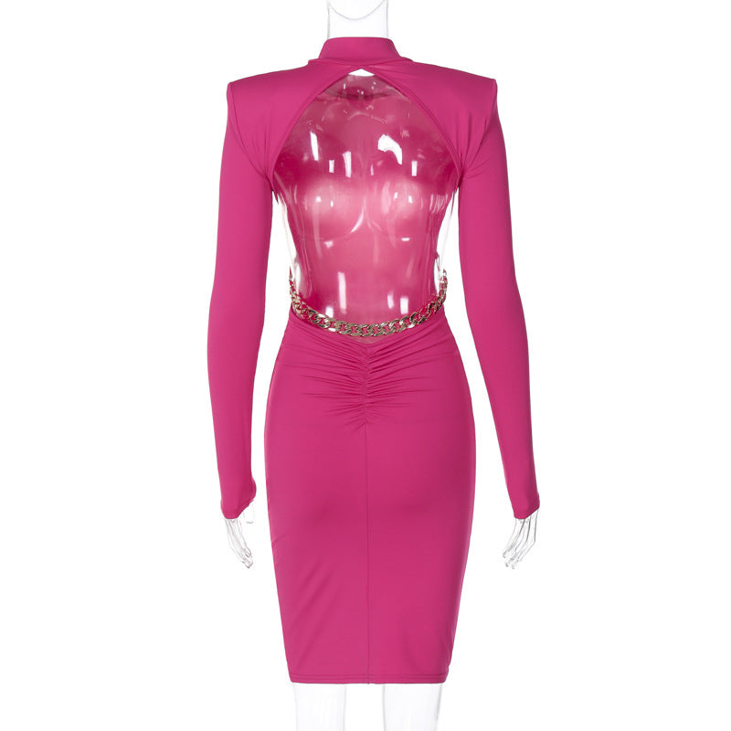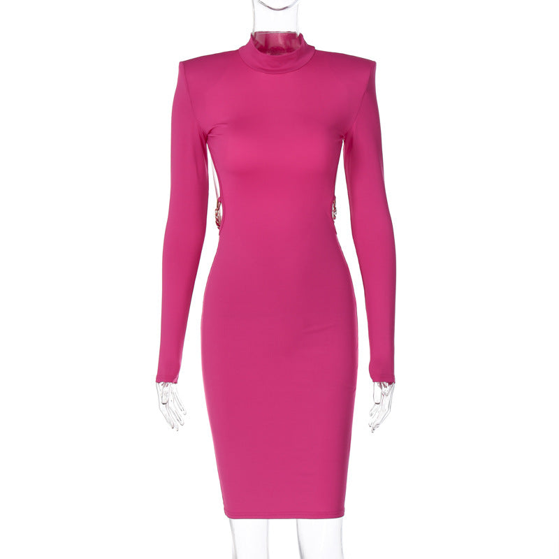 Women Dresses Winter Sexy Backless Chain Slim Sheath Dress