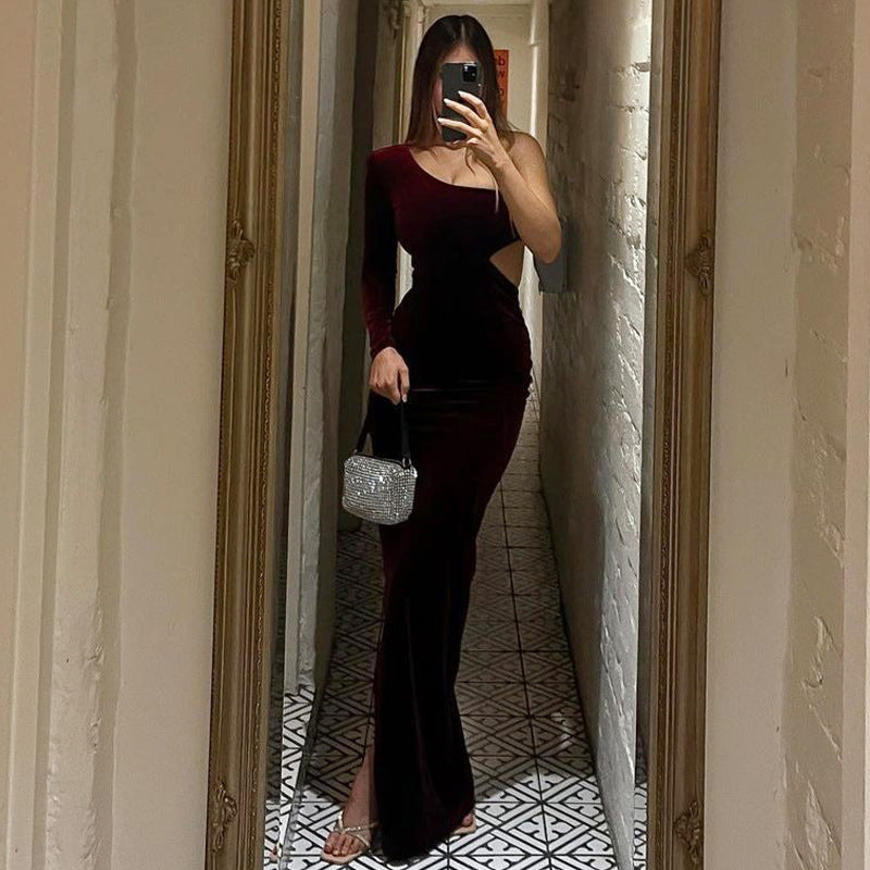 Women Dresses Winter Sexy Cutout One Shoulder Dress