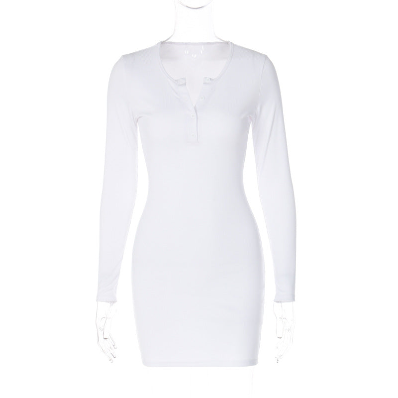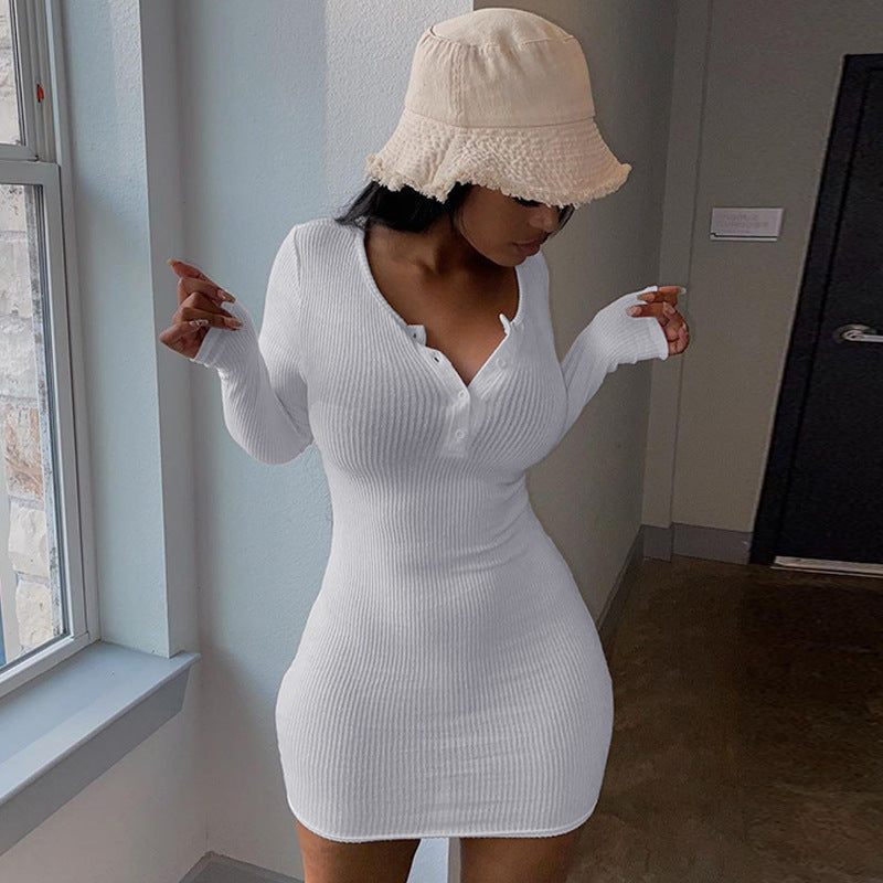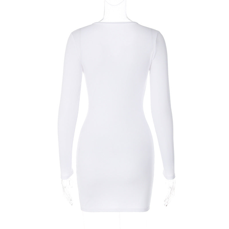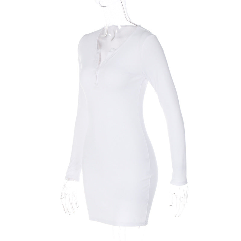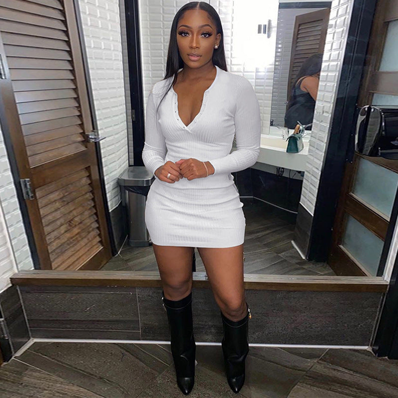 Women Dresses Autumn Winter Sexy V-neck Slim-Fit Long Sleeve Sheath Dress