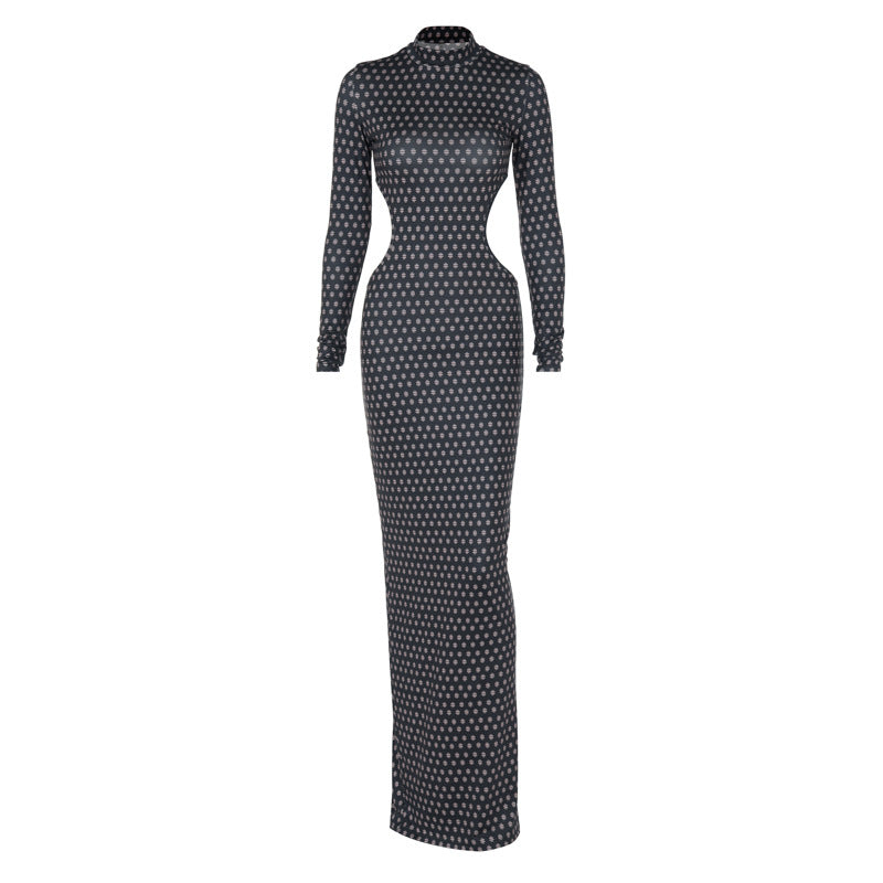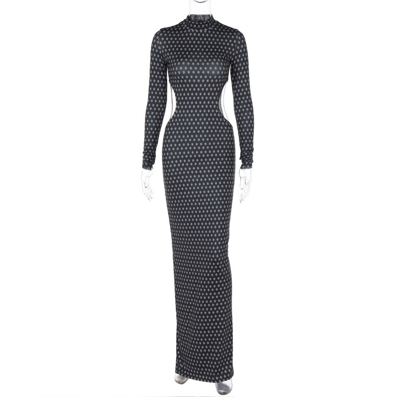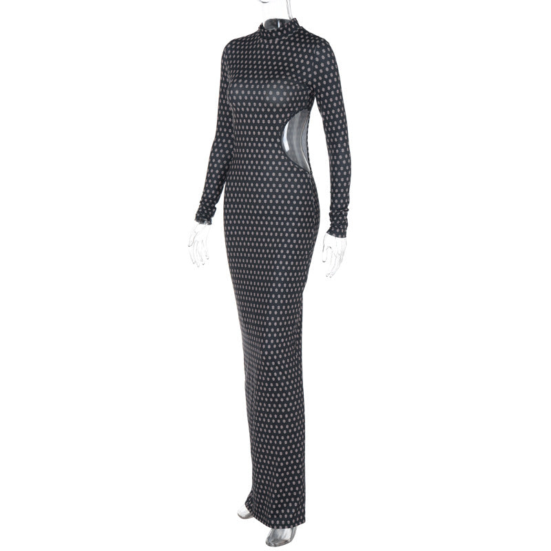Women Dresses Winter Slim Hollow out Split Long Sleeve Dress