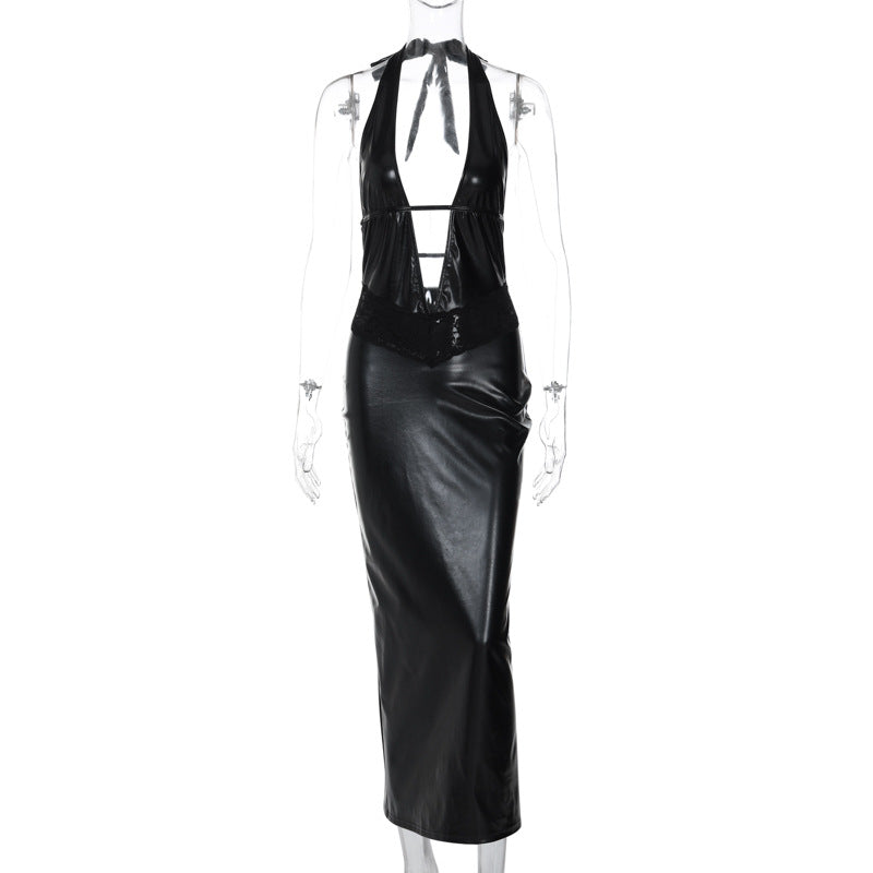 Women Dresses Winter Sexy Backless Hollow out Tied Dress