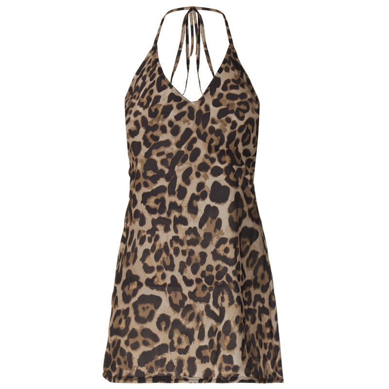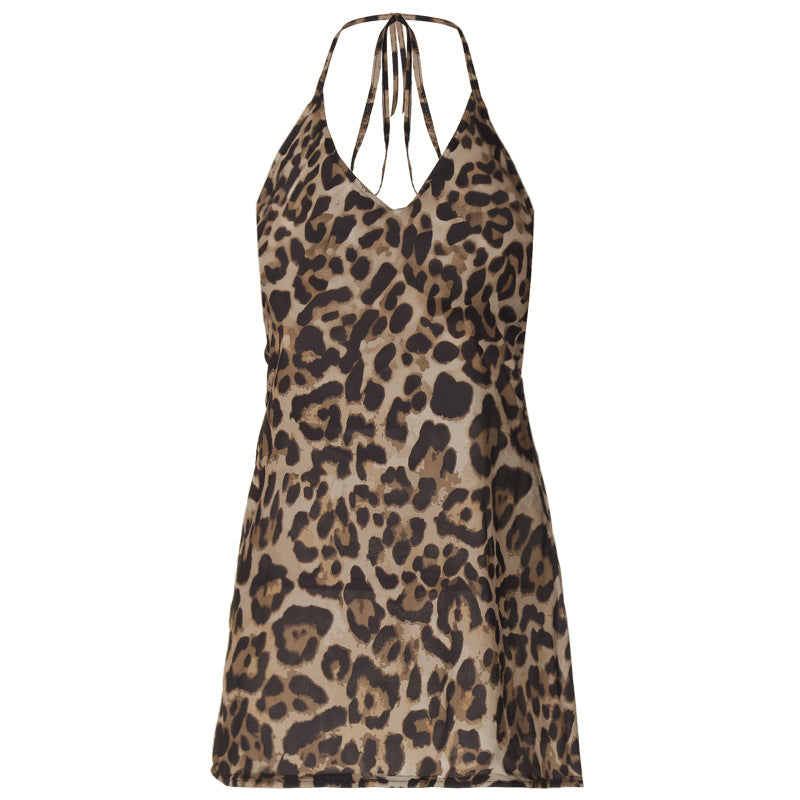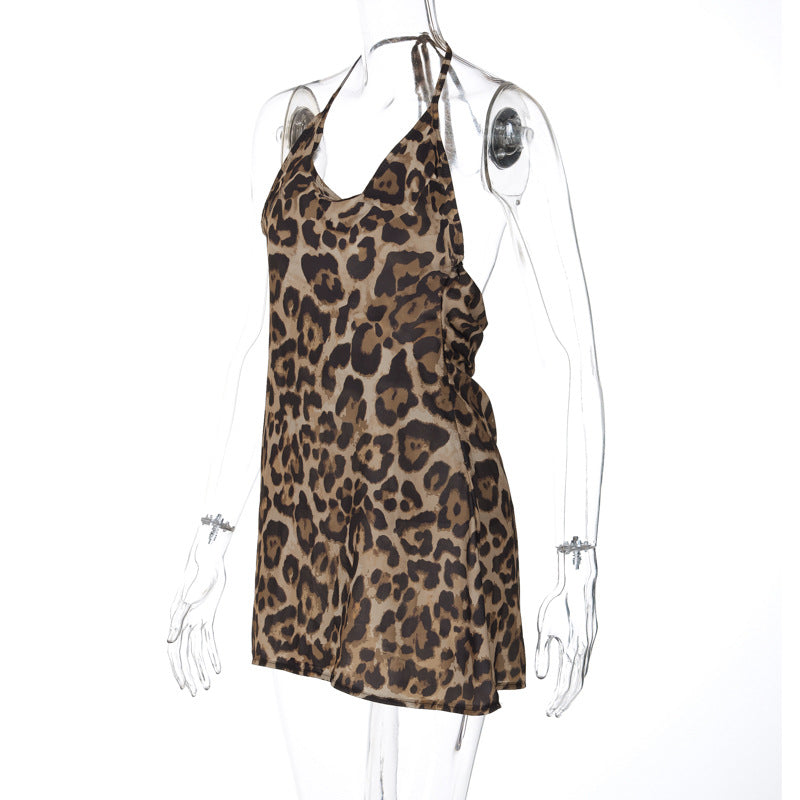Women Dresses Summer Leopard Print Sexy Backless V-neck Dress