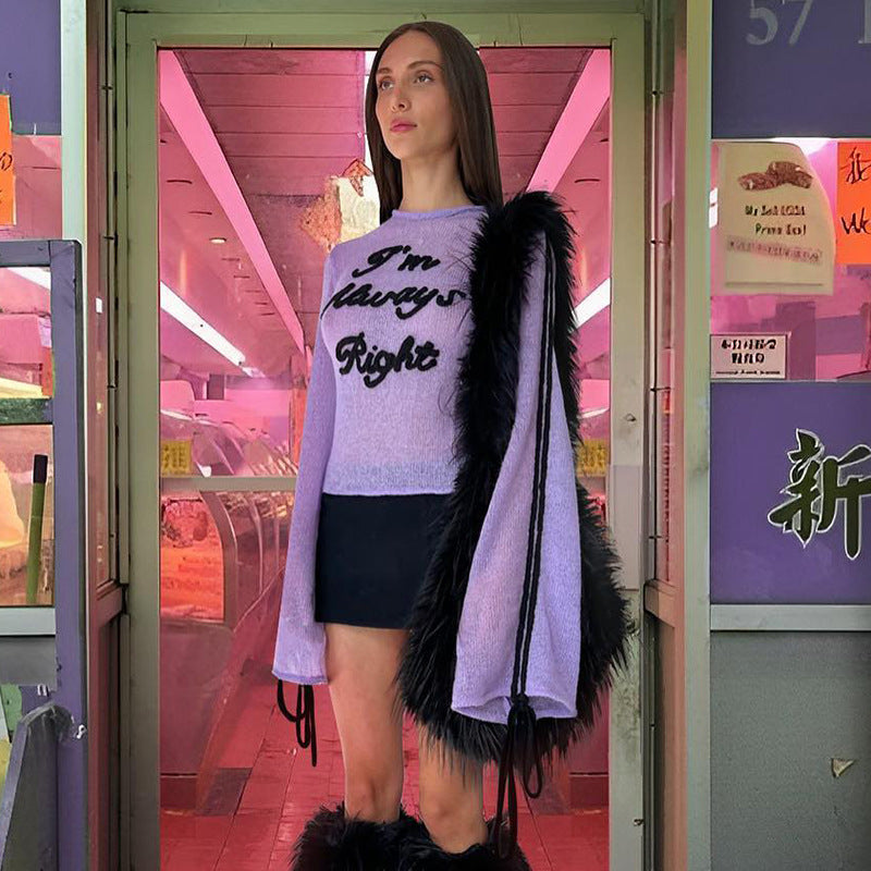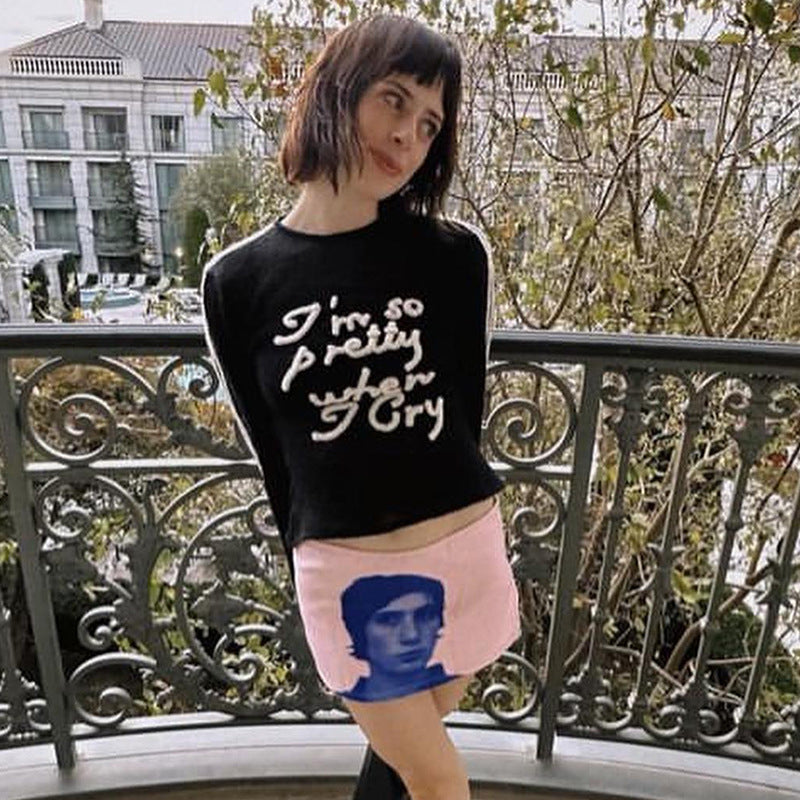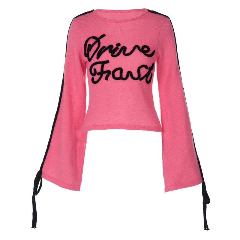 Women Knitted Sweater Loose Embroidered Woolen Top